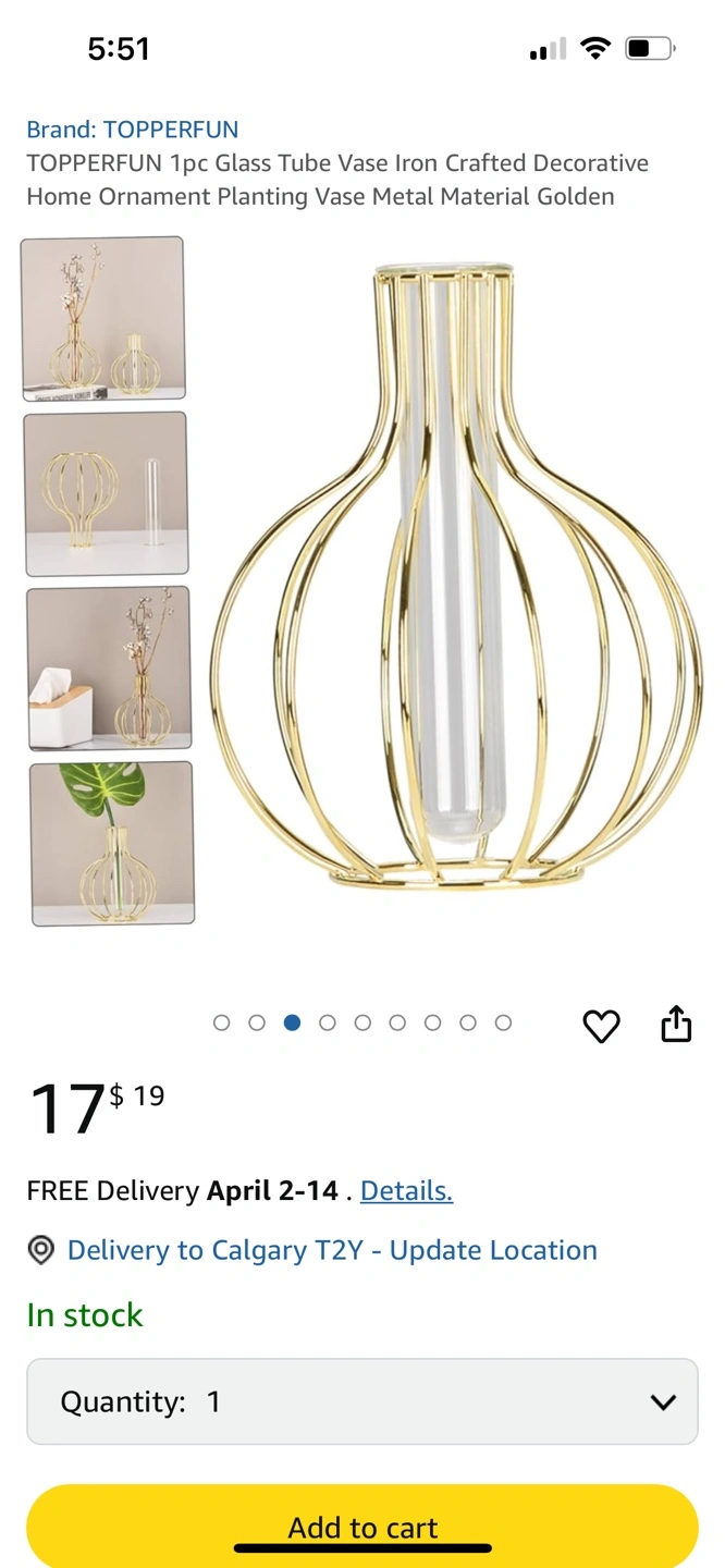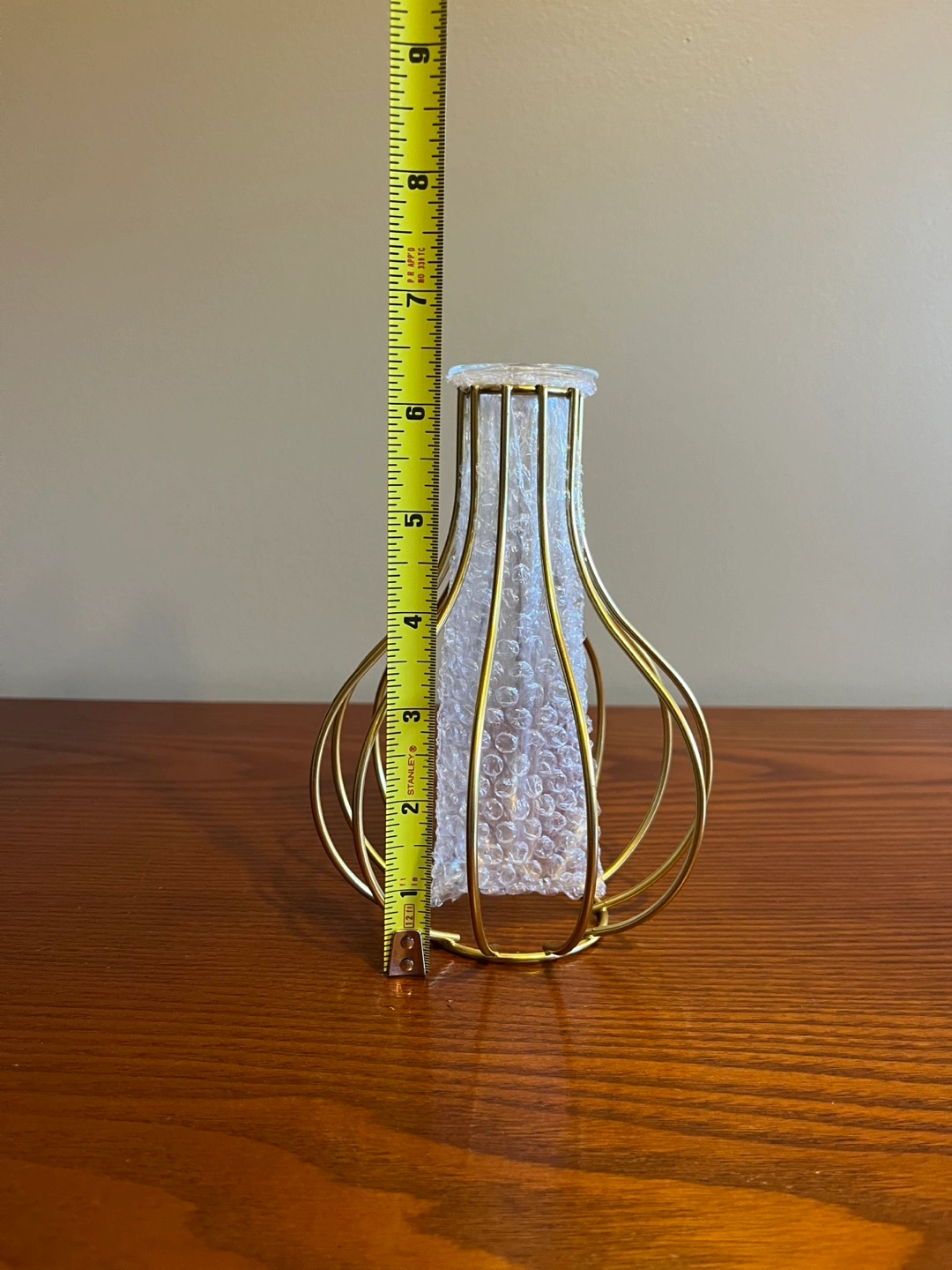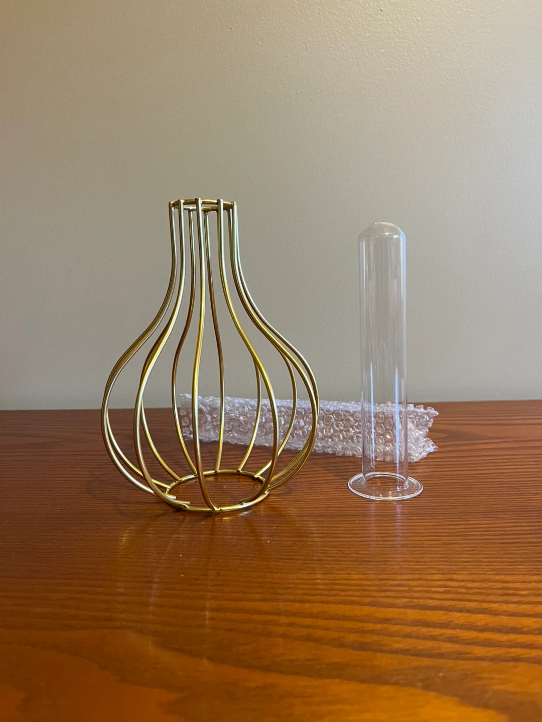 BRAND NEW (Never used) Golden metal material iron crafted glass tube decorative vase. Measurements are shown in the pictures. Last picture is for price reference only. Cross posted.