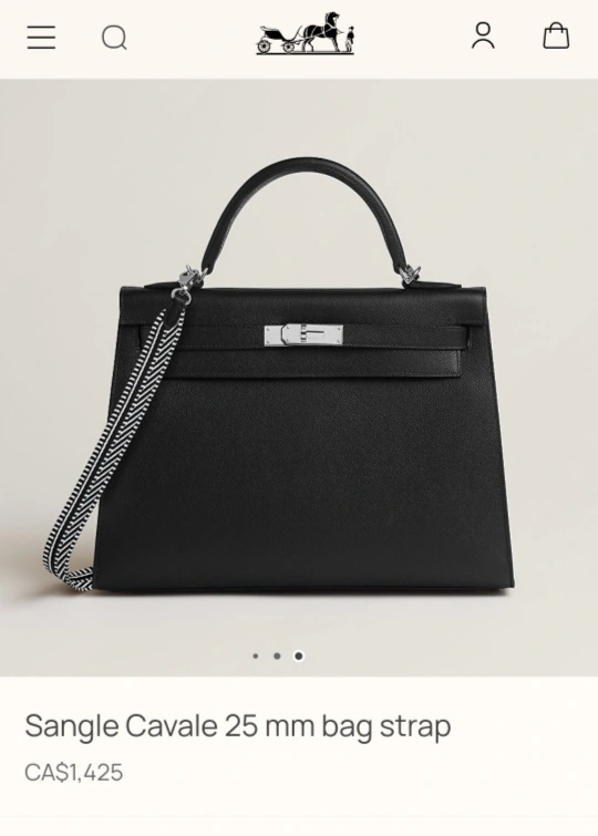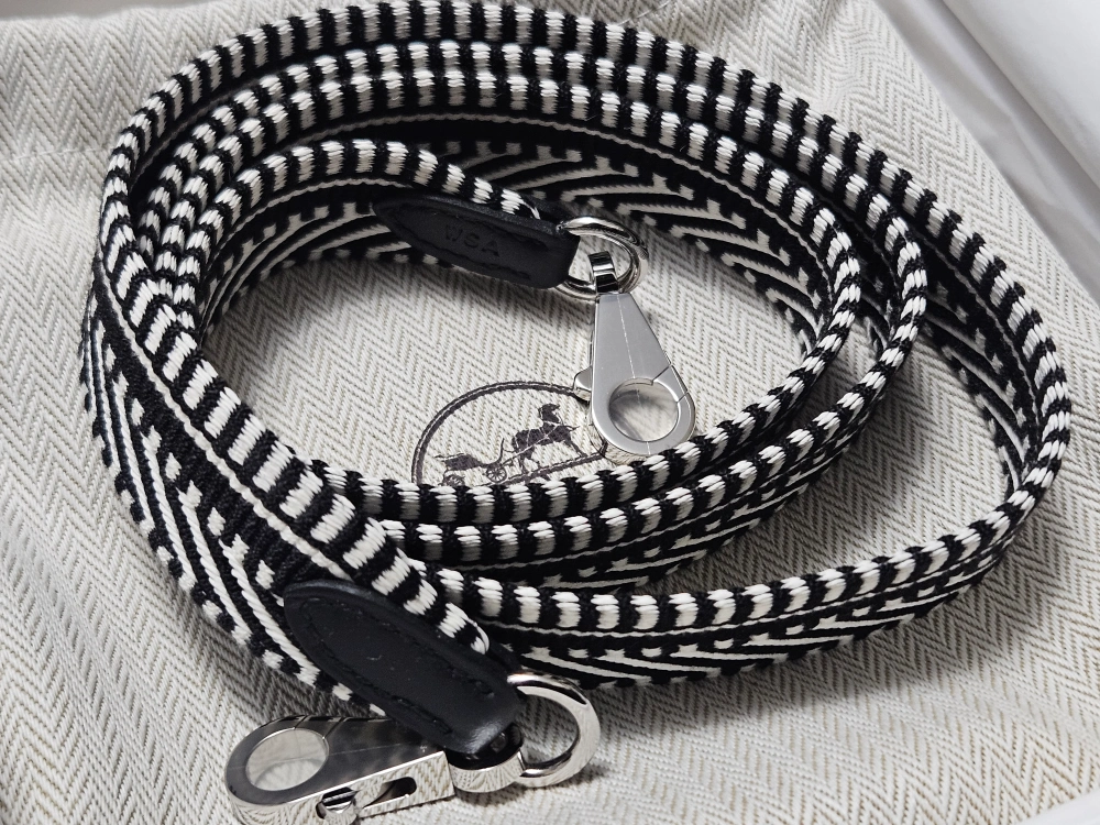 Authentic Hermès Sangle Cavale bag strap. 25 mm width. Black and white striped design. Excellent condition. Includes dust bag. Perfect for your Hermès handbag. Perfect Mother's Day gift 🎁