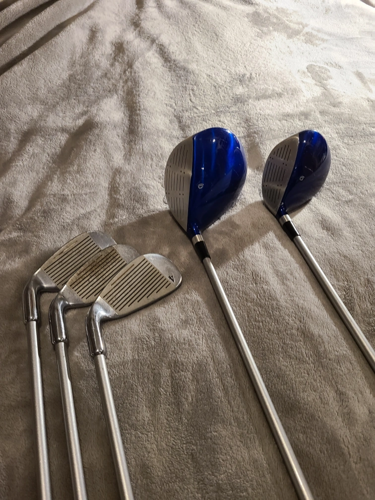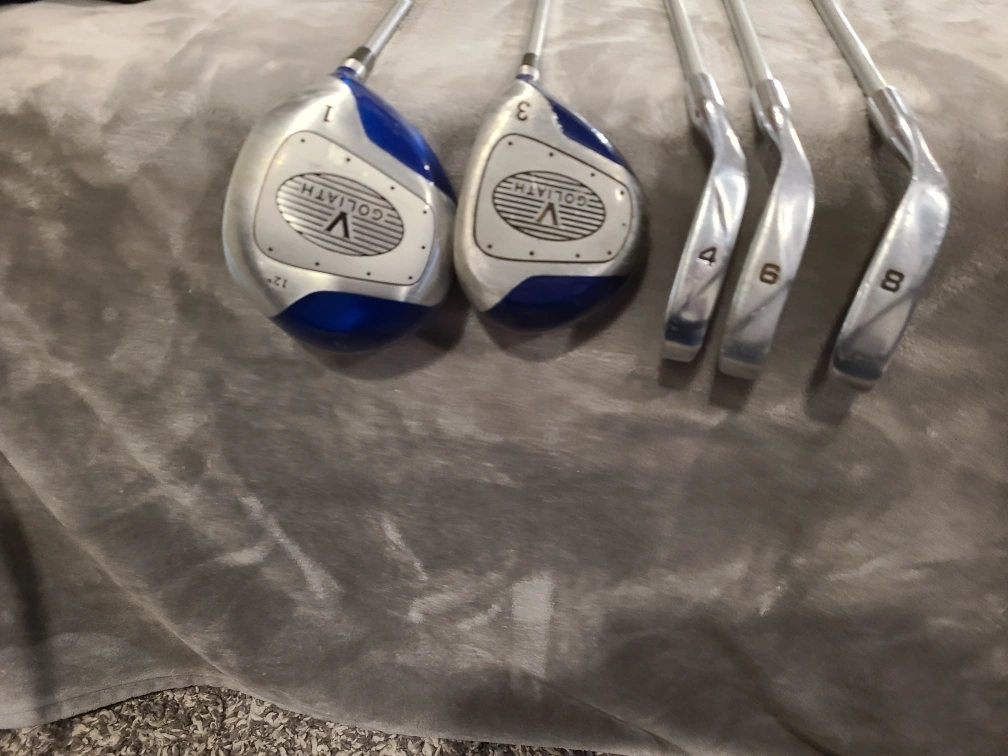 Golf club set. Includes driver, 3 wood and irons 4, 6, and 8. Graphite shafts. Good condition.