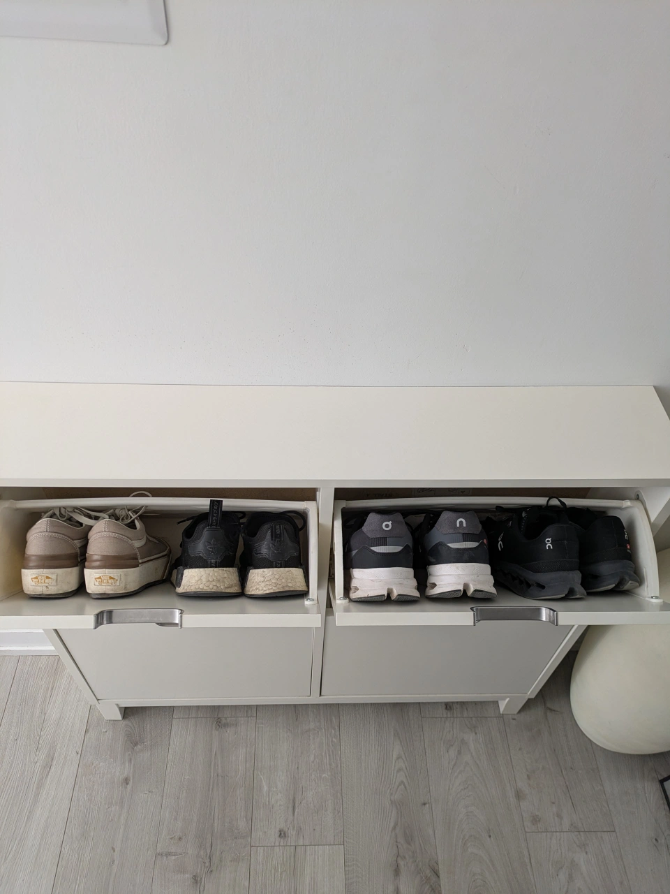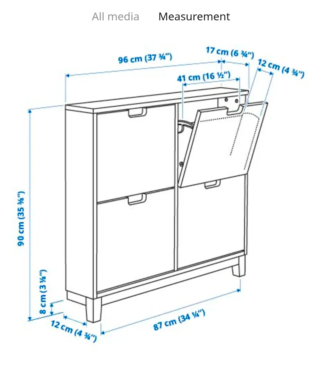 IKEA STÄLL white shoe cabinet in excellent condition. Very space-saving, takes up little space but stores a lot. Dimensions: 96cm (W) x 90cm (H) x 17cm (D) - refer to last photo for details. Purchased for $179. Moving sale - check out my other listings ✨