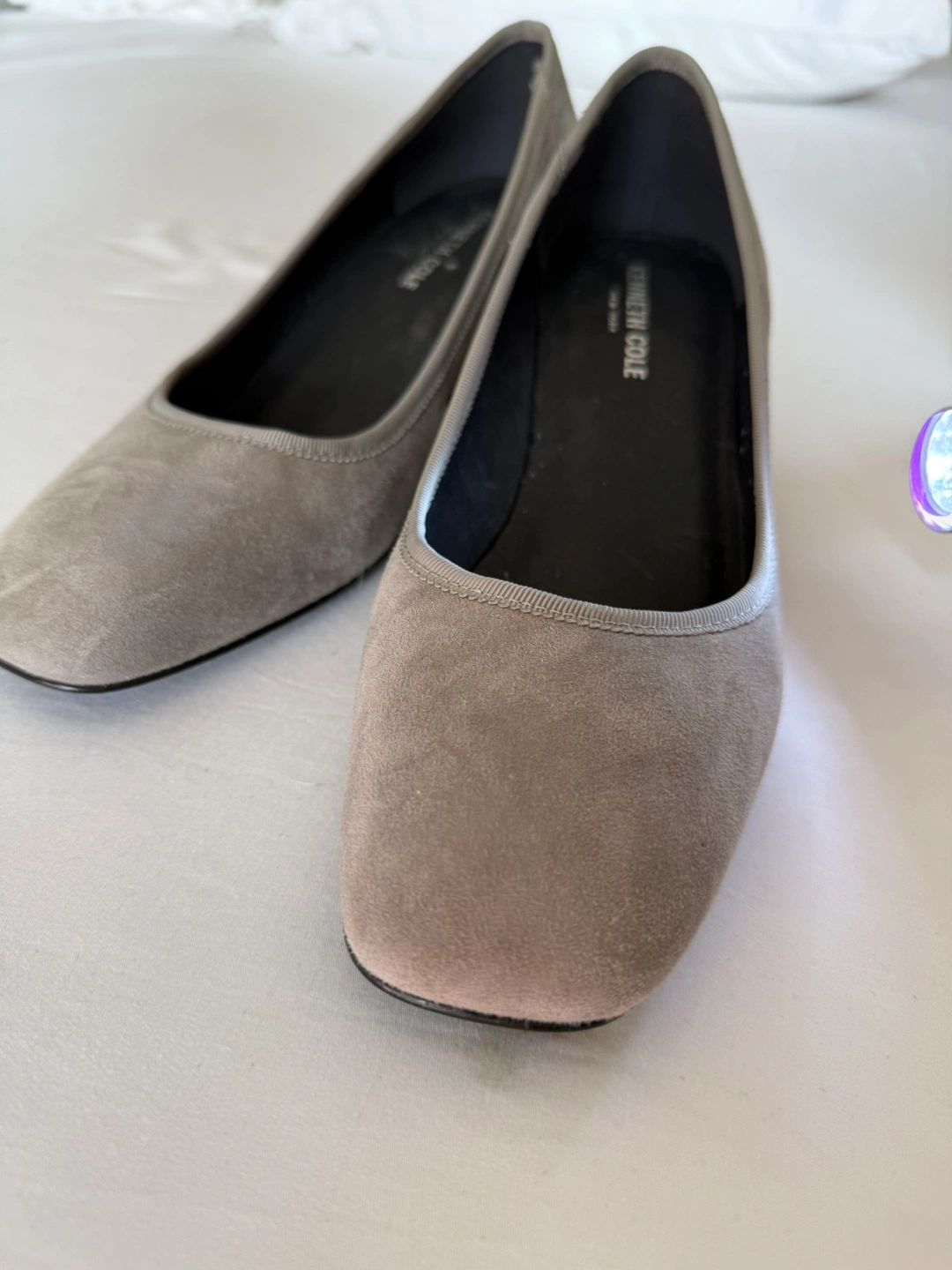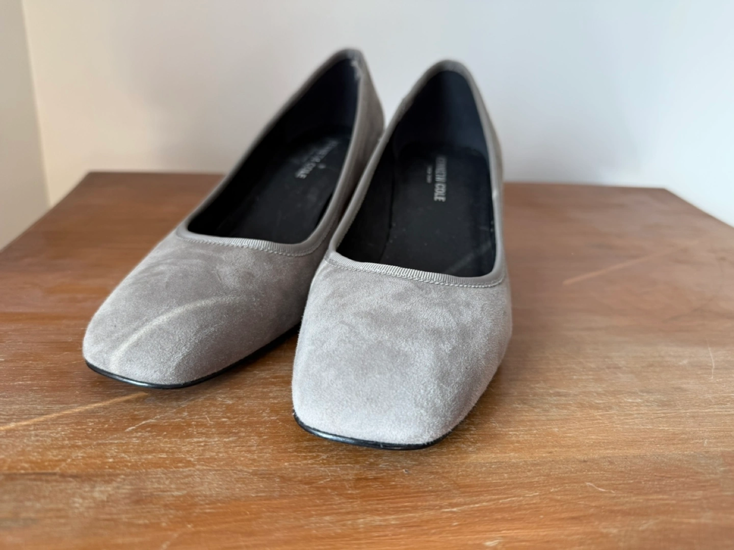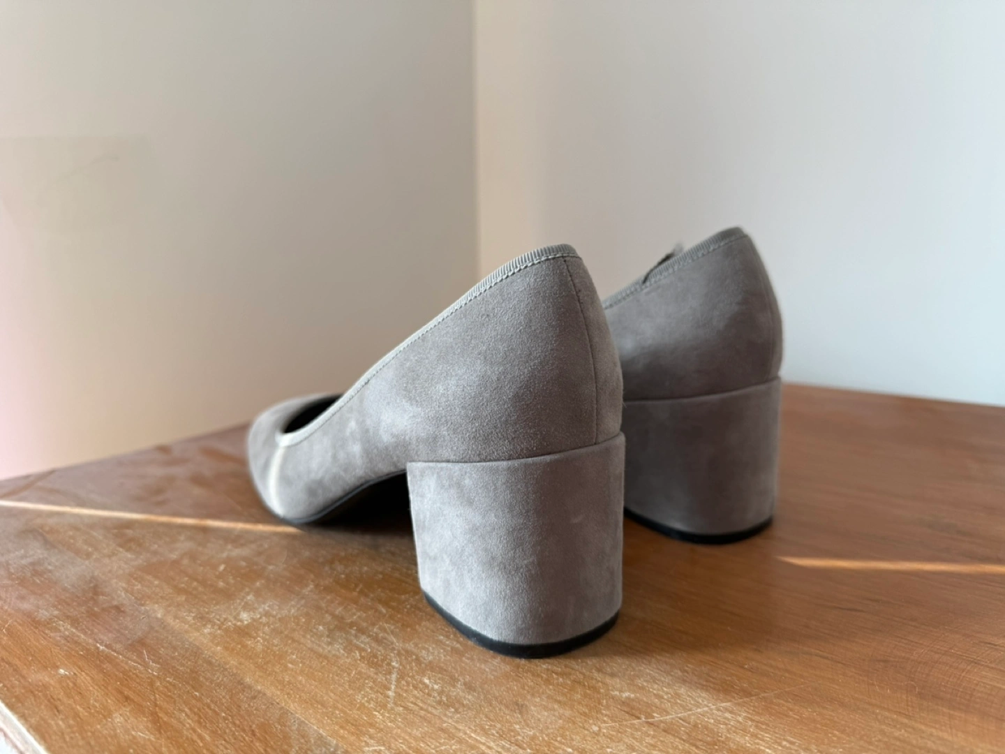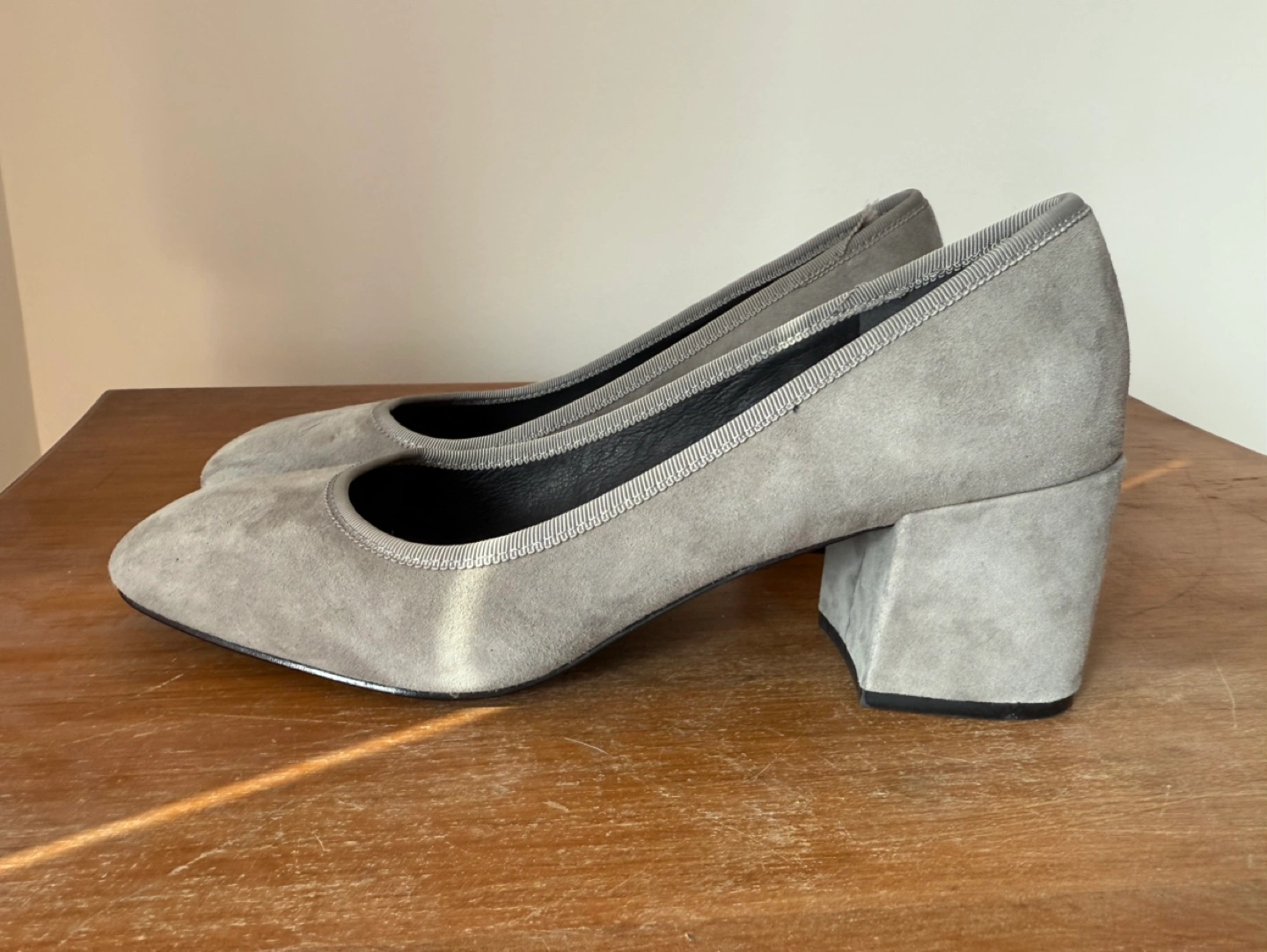 Women's grey suede pumps. Block heel. Square toe. Lightly used.