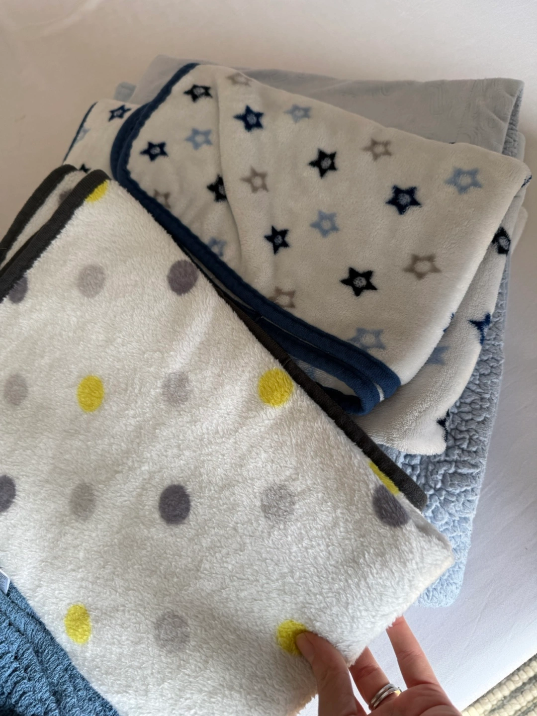 Bundle of 8 baby blankets. Includes Aden + Anais muslin blanket and 7 other soft blankets. Various colours and patterns. Perfect for baby.