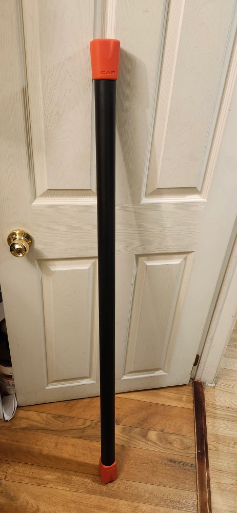 Excellent condition Black weighted bar, 10lb. Orange end caps. Great for home workouts. price only cash only pickup no delivery. 801 O'Connor drive outside TD Canada Trust bank door. East York