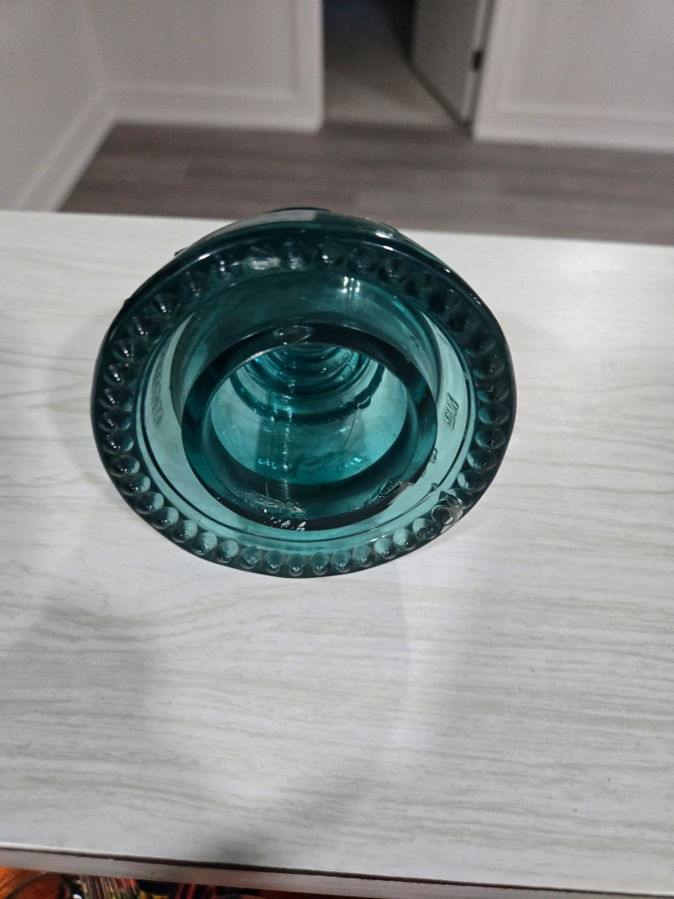 Beautiful teal glass insulator. Shows some wear. Great for collectors or vintage enthusiasts. Unique addition to any collection. Small chip at base. pickup only mississauga