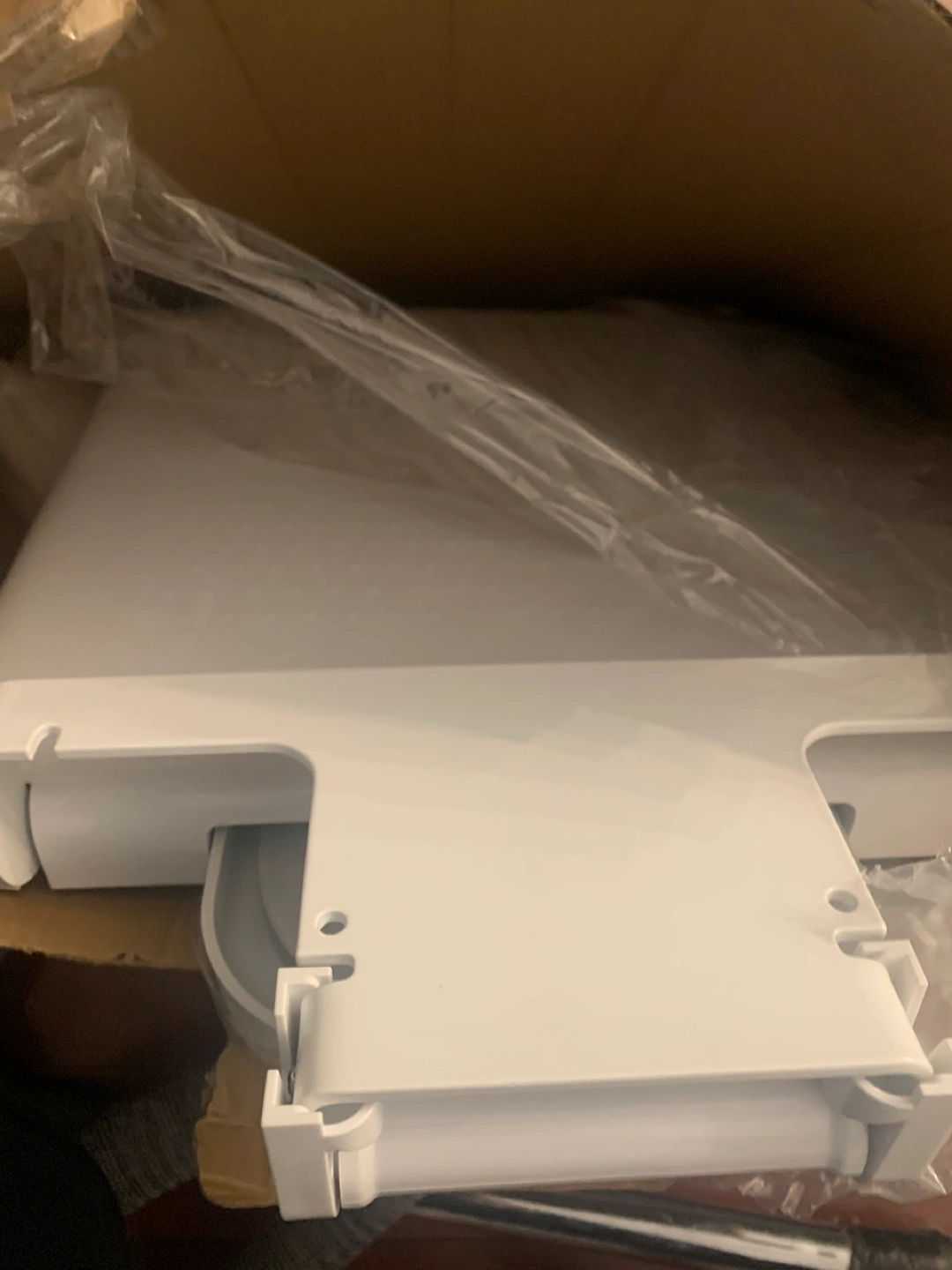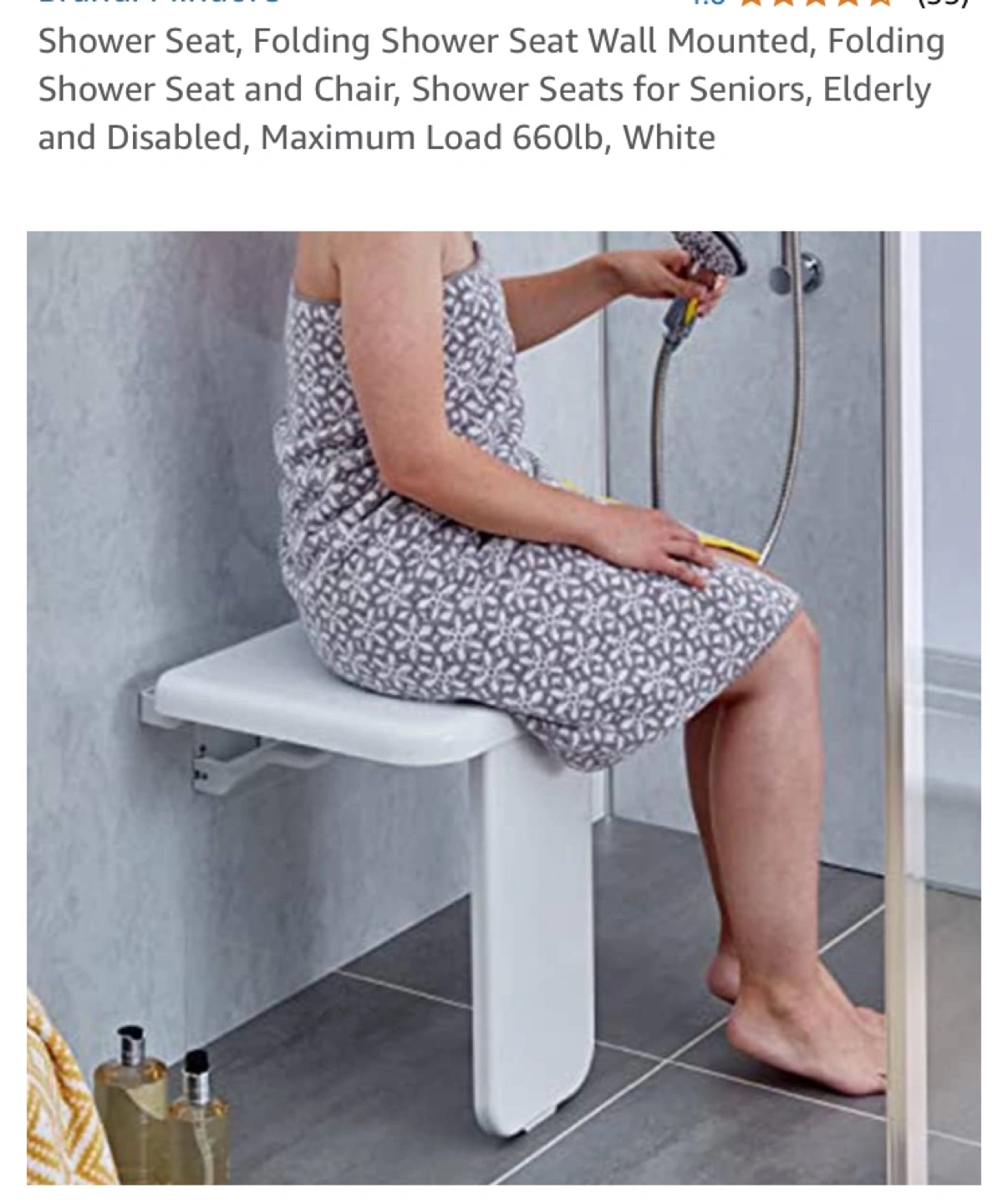 Wall-mounted folding shower seat. White plastic. Maximum weight capacity 660 lbs. Ideal for seniors and people with disabilities. Easy to install. This is brand new in box. The box is not in the greatest condition though was purchased and never installed Retails for $225