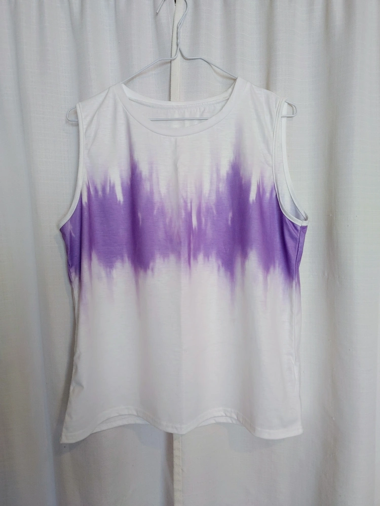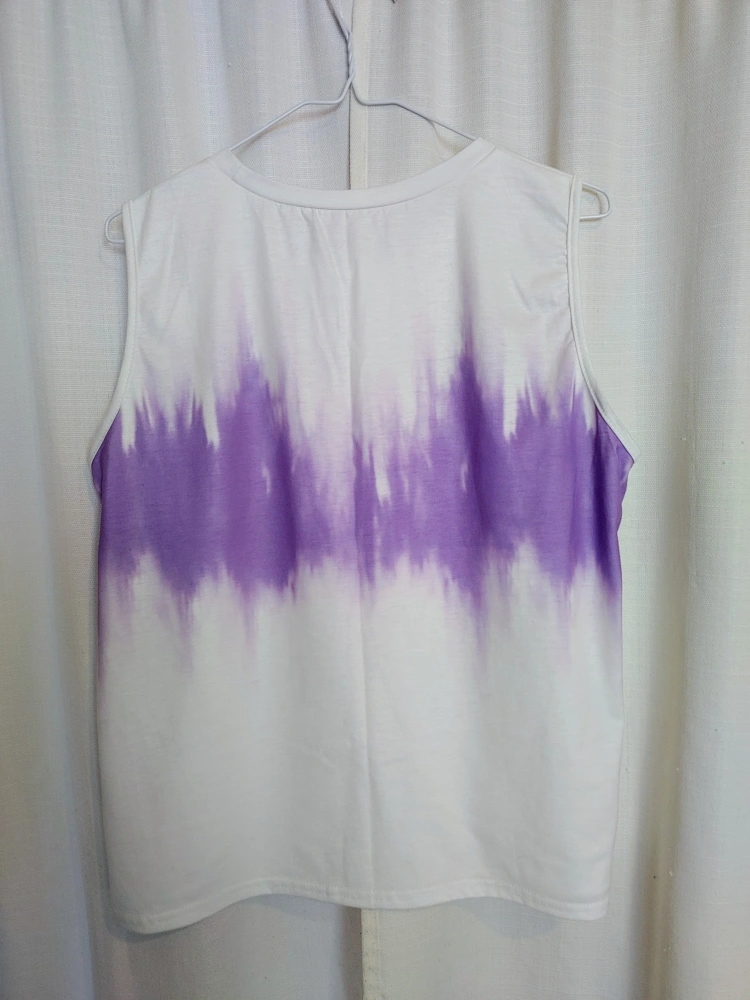 White sleeveless top with a purple tie-dye pattern. Relaxed fit. The fabric has a nice smooth quality feel to it, and it is not transparent...like how some white fabric can be seen through. PICKUP Only Weston area. Located in between Notre Dame and Logan Ave. 2 blocks from Cantor's Grocery, and a few houses away from Pascoe Park. Willing to meet curbside. My home is clean, bug free, smoke free, and kitty friendly. Payments in cash are preferable, Exact change ONLY. E-transfer welcome.