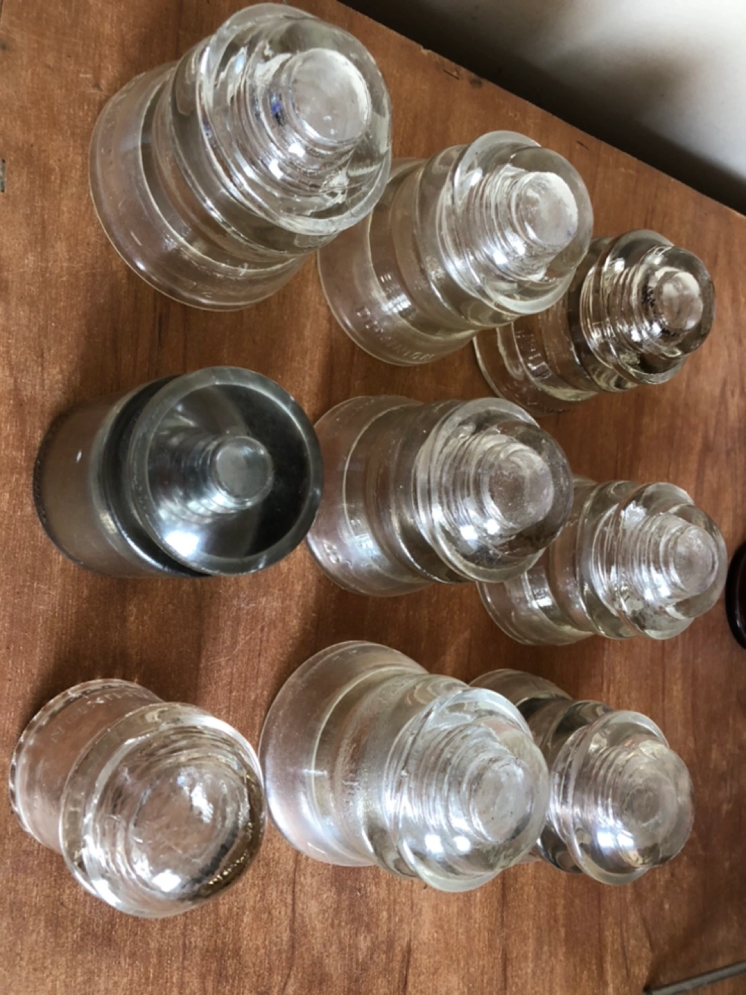 Collection of vintage glass insulators. Some show wear from age and use Great for collectors or vintage enthusiasts. Sold as a lot. All 9 pcs for $5 Check my other posts