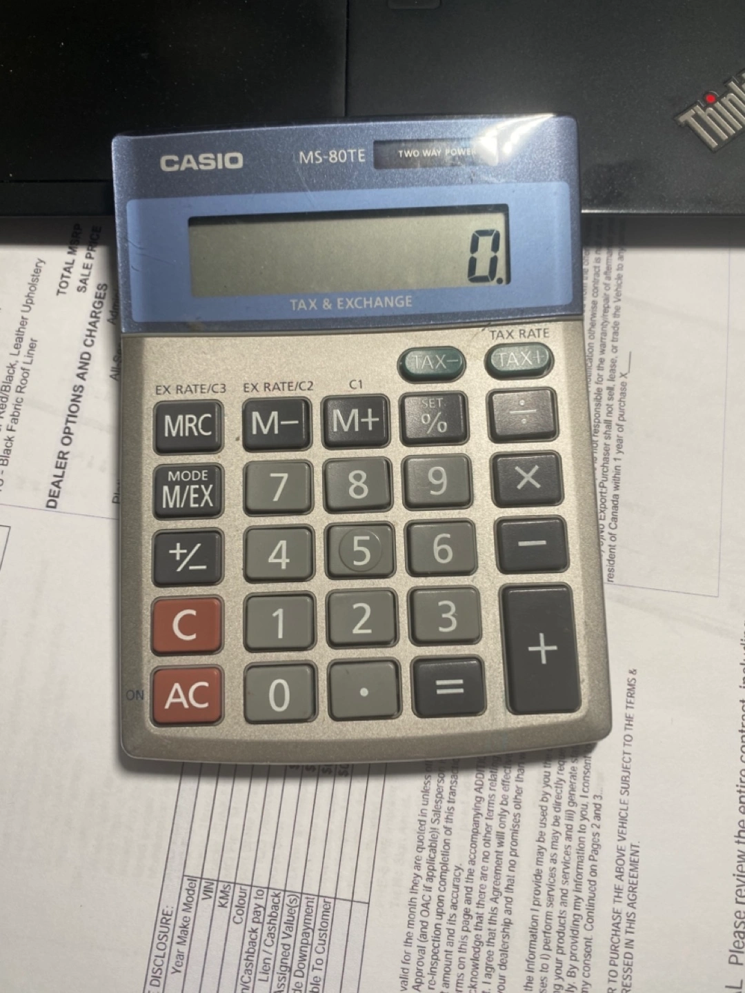 Desk calculator. Two-way power. Good condition. Tax and exchange functions. Includes battery.