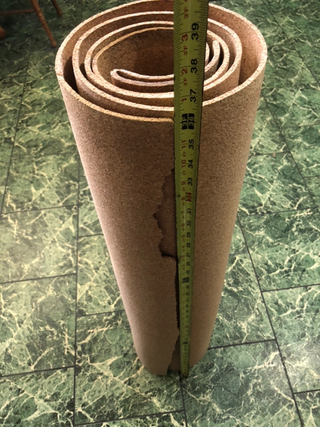 Unused Rolled cork sheet. 1/4”thick x36”wide over 5 ft long. Some minor edge damage. Great for making for own bulletin board, crafts or other projects. Check my other posts