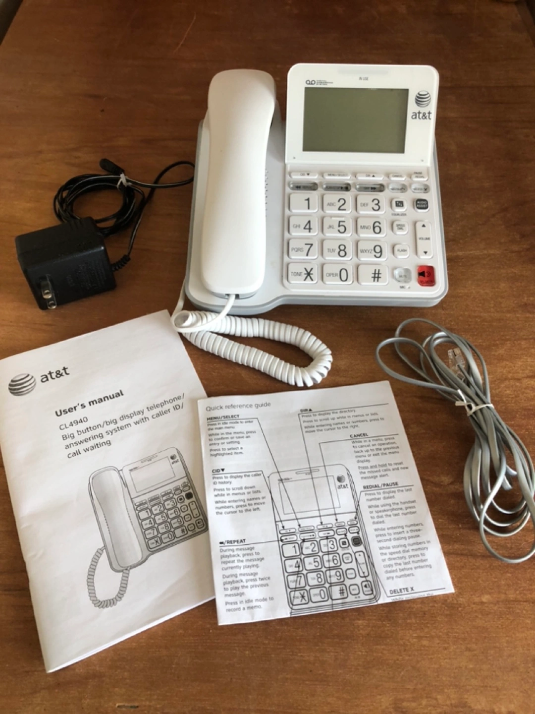 Hardly used landline Corded phone with large buttons and Comes with power adapter, phone cord, and user manual. White. Check my other posts
