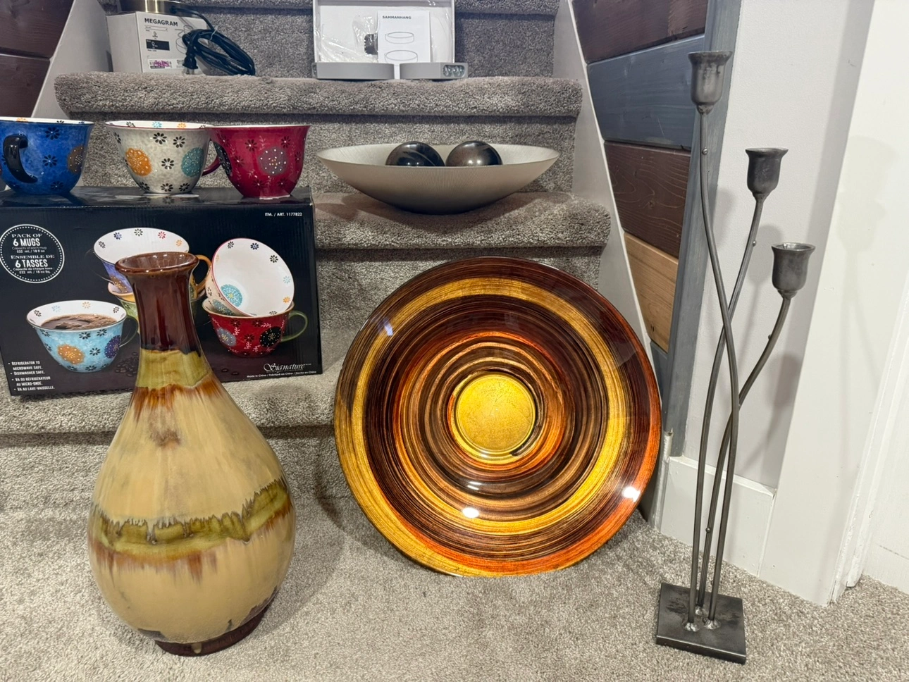 Household & Decorative items for $10 each - Downsizing Sale - Midnapore SE All items are in NEW condition and some are BNIB Each item listed below is 10 EACH FIRM - IKEA Sammanhang Display Shelves - NEW - Ikea MEGAGRAM Table lamp - NEW - Glass shallow brown & Gold bowl / plate - Glass white and brown bowl with 2 balls - 18oz Stoneware mugs - set of 3 - NEW - 22” Pewter Candelabra / Candlestick Holder - 16” Ceramic Gooseneck vase - Square wood sayings (8”x8”) x 2 - Make It Happen (16”x22”) - Silver framed seashell prints (7”x9”) x2 All items have been individually posted, see my other ads for details and more photos. Pick up in Midnapore SE from a non-smoking home or meet downtown weekdays preferably with advance etransfer (non-breakables only). Please check out my other ads