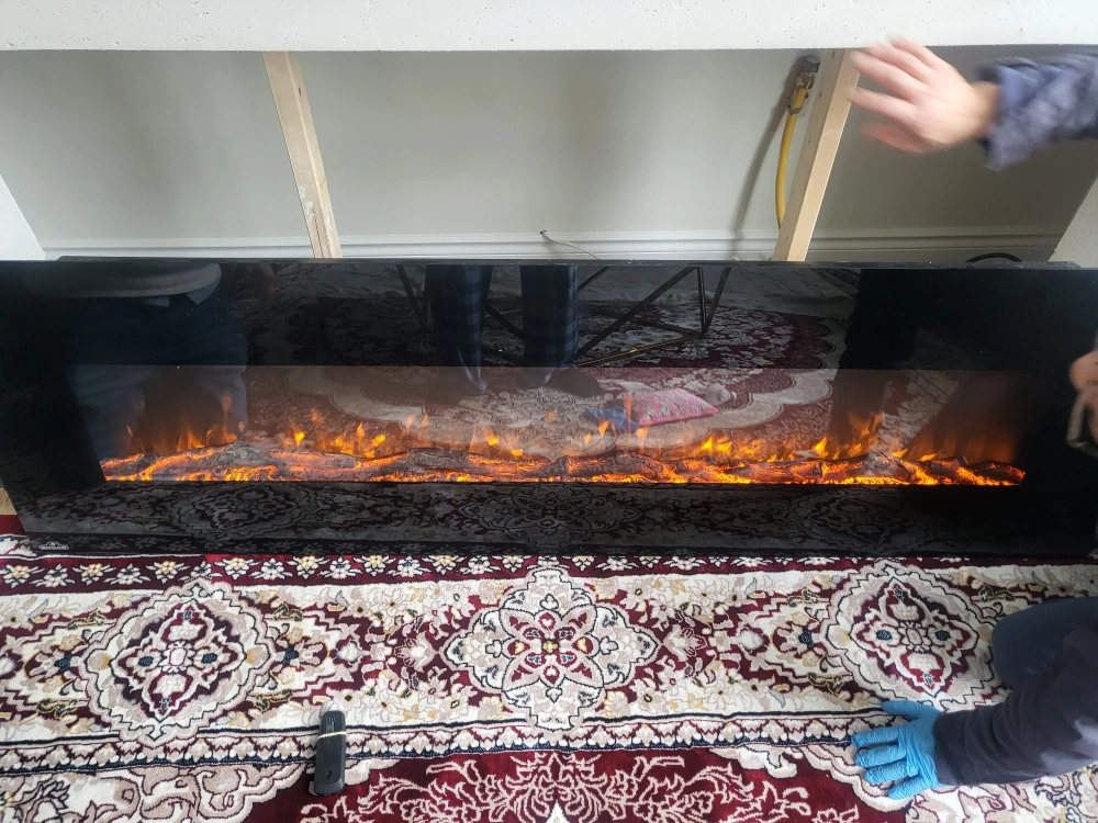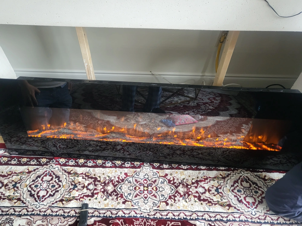 Beautiful electric fireplace insert. Sleek black design. Creates a realistic flame effect. Perfect for adding warmth and ambiance to any room. Easy to install.