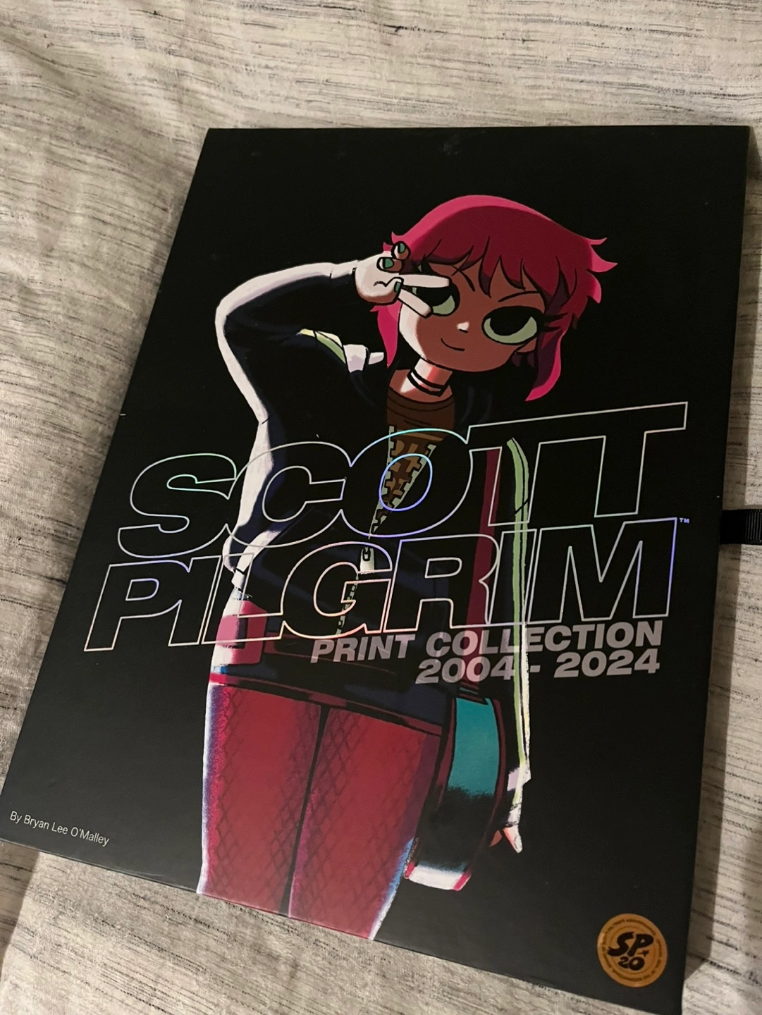 20 prints, 20 years. Scott Pilgrim print collection book. Features artwork by Bryan Lee O'Malley. 2004-2024.
