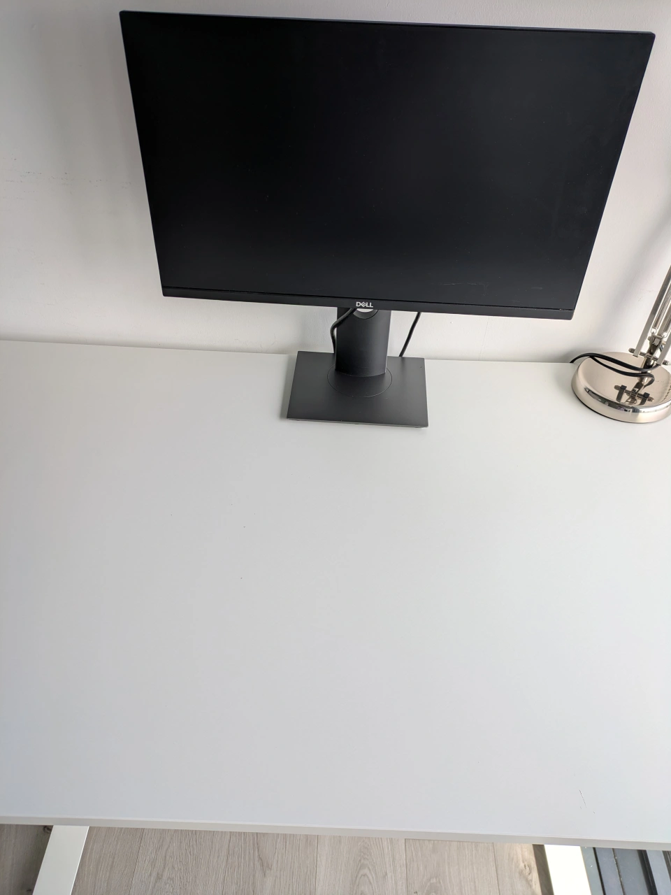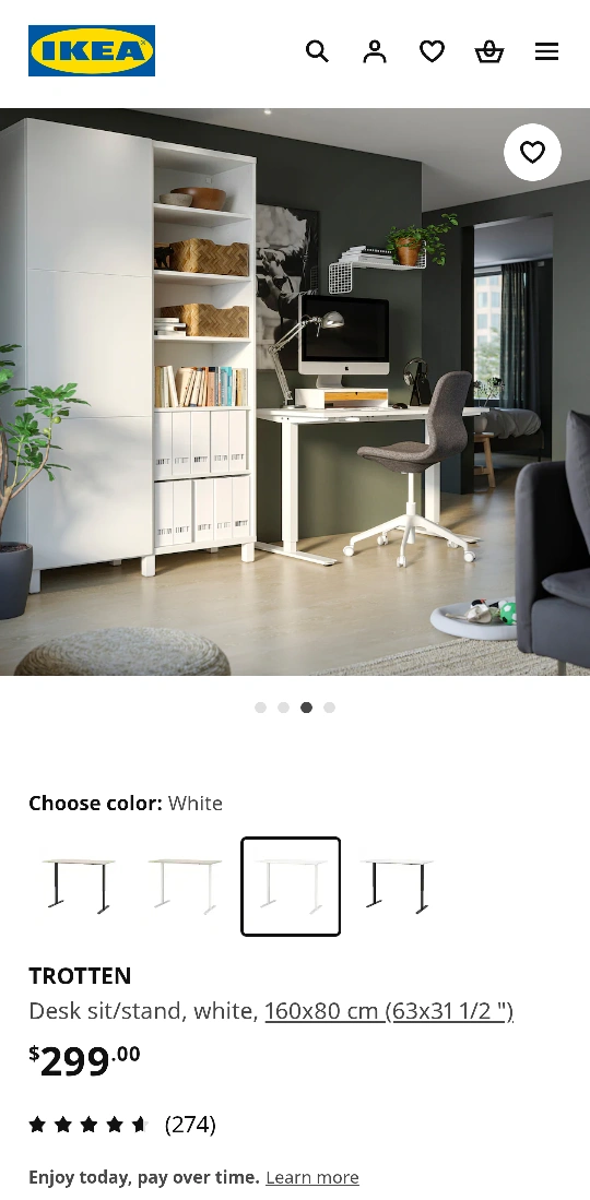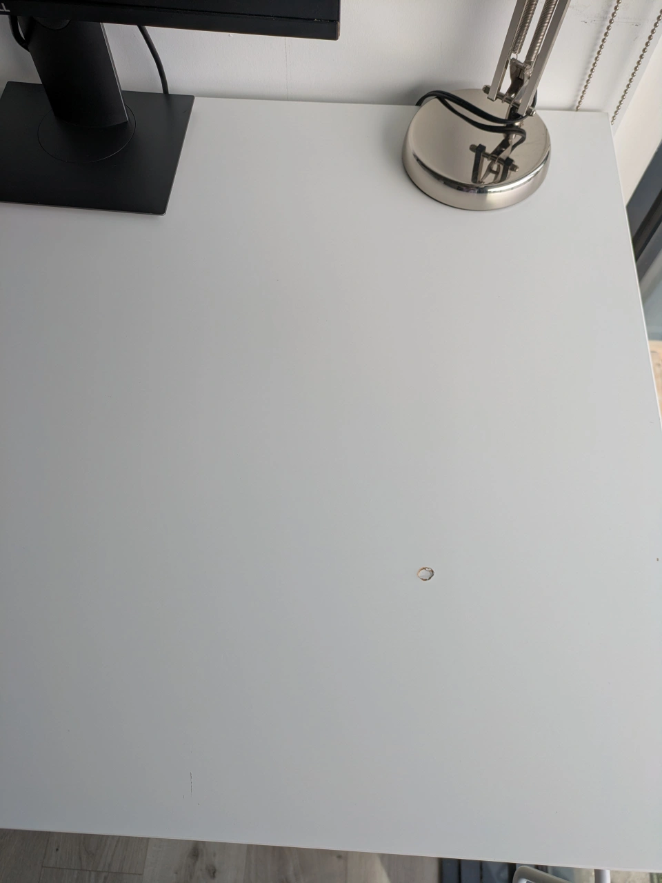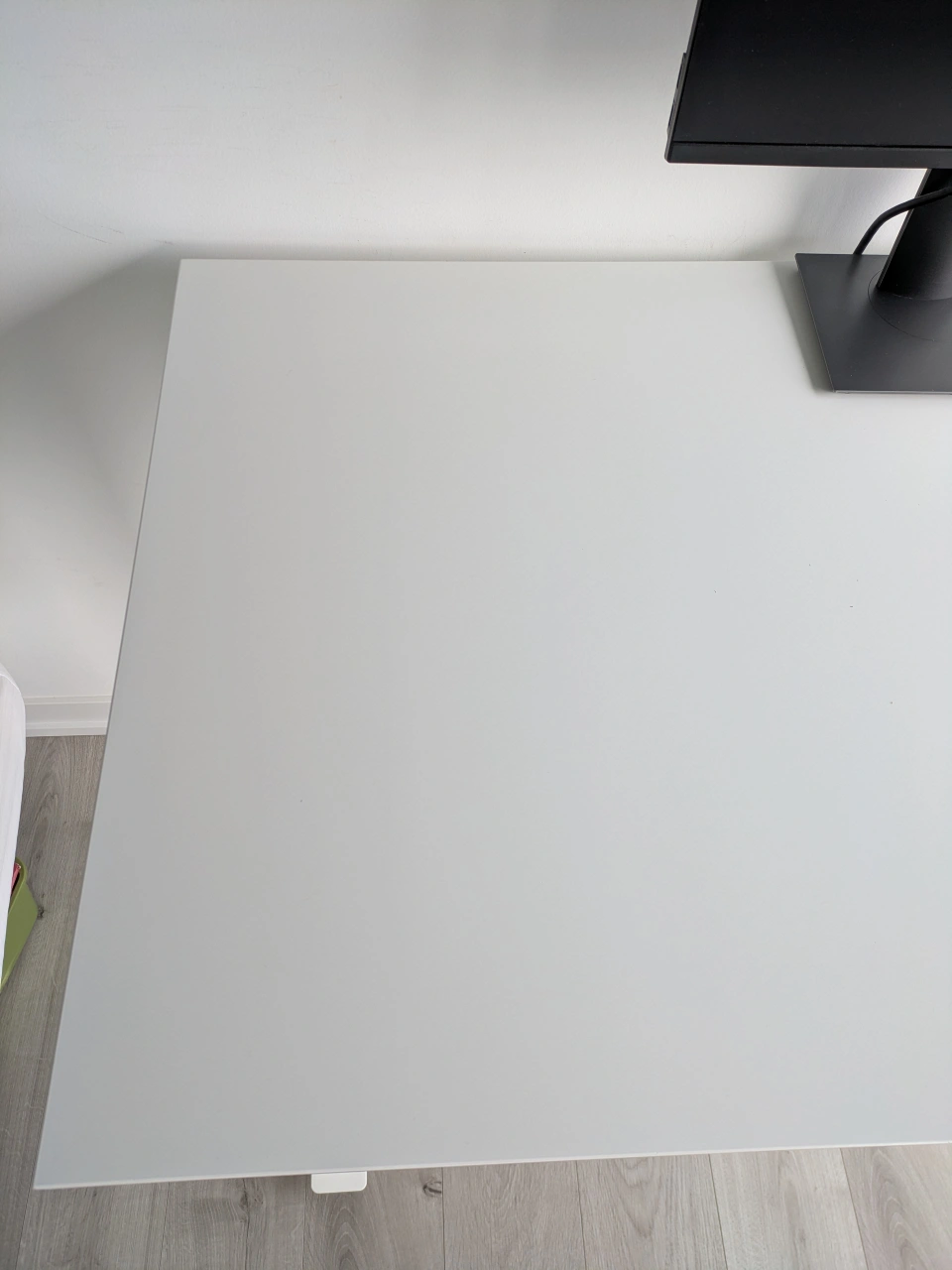 Spacious IKEA Trotten standing desk, powered by a crank handle. White tabletop and white metal legs. One dent and tiny scuff marks (see pictures), otherwise in solid condition. Dimension details in last photo (min height 72 cm, max heights 122 cm). Retails for $299 + tax. Moving sale - check out my other listings ✨