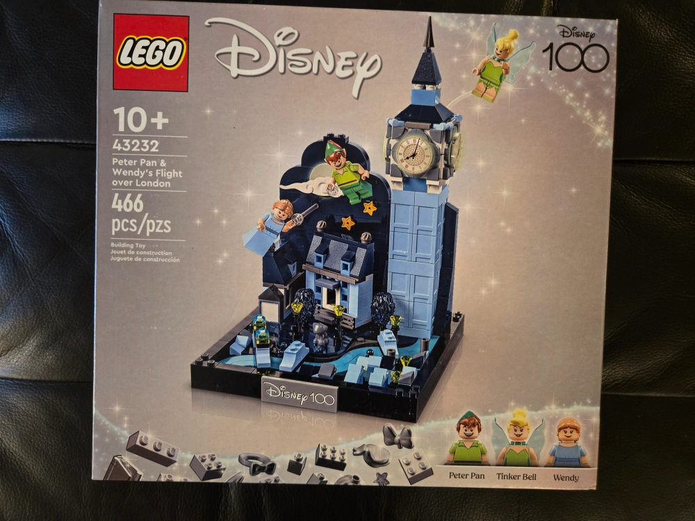 New LEGO Disney set. Peter Pan, Wendy, Tinkerbell minifigures. Big Ben model. 466 pieces. Ages 10+. Collector's item.