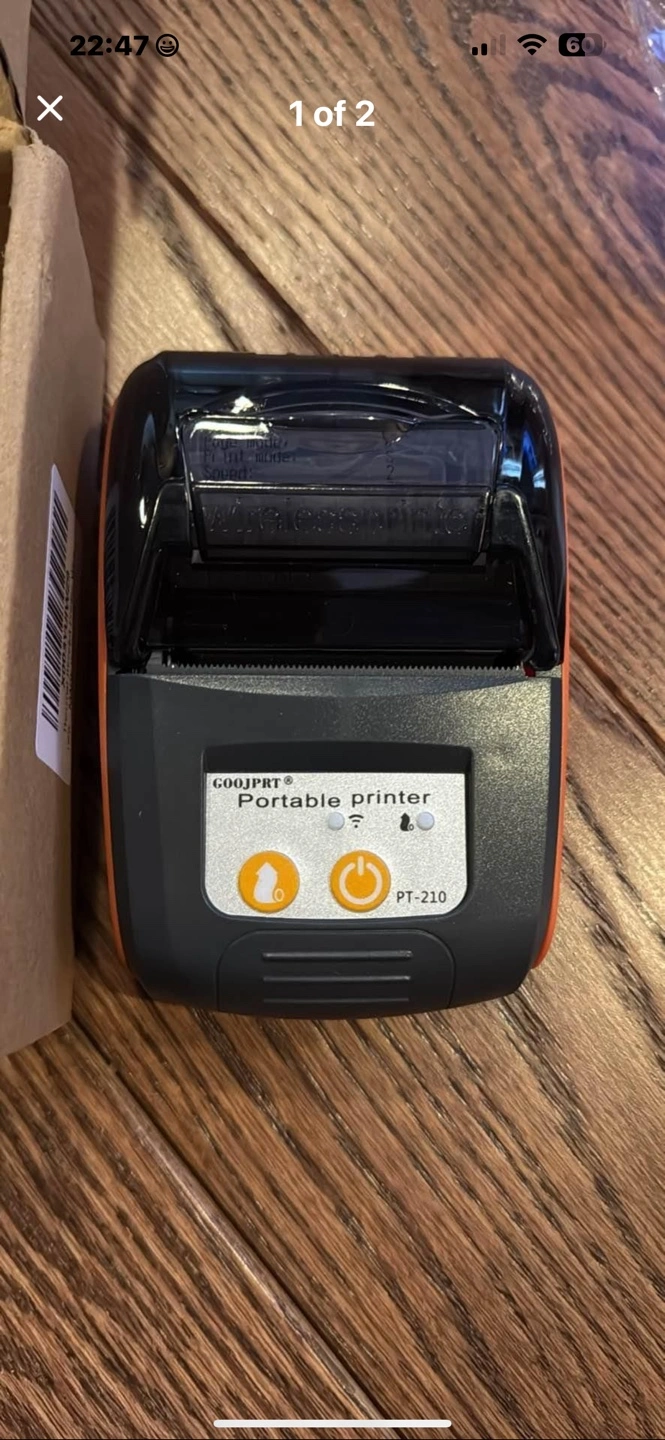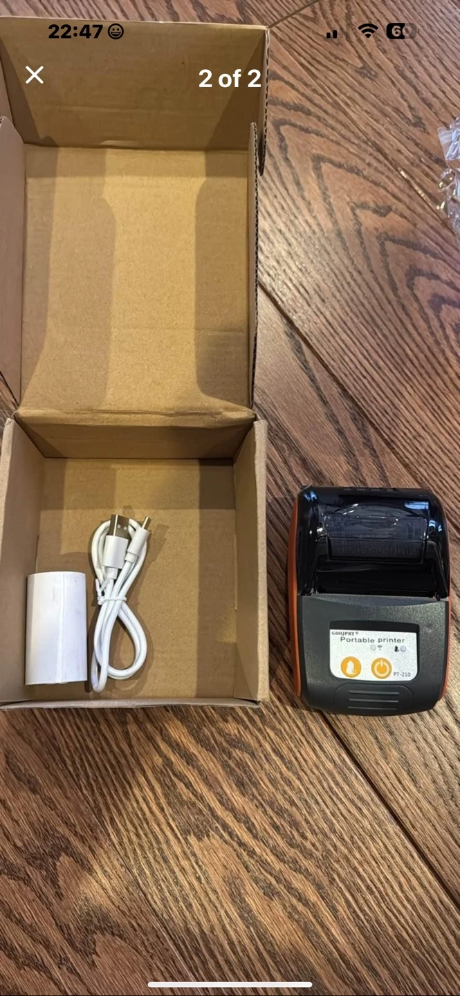 Portable thermal printer, great for small business. Includes USB cable and power adapter. New, never used. Compact and easy to use.