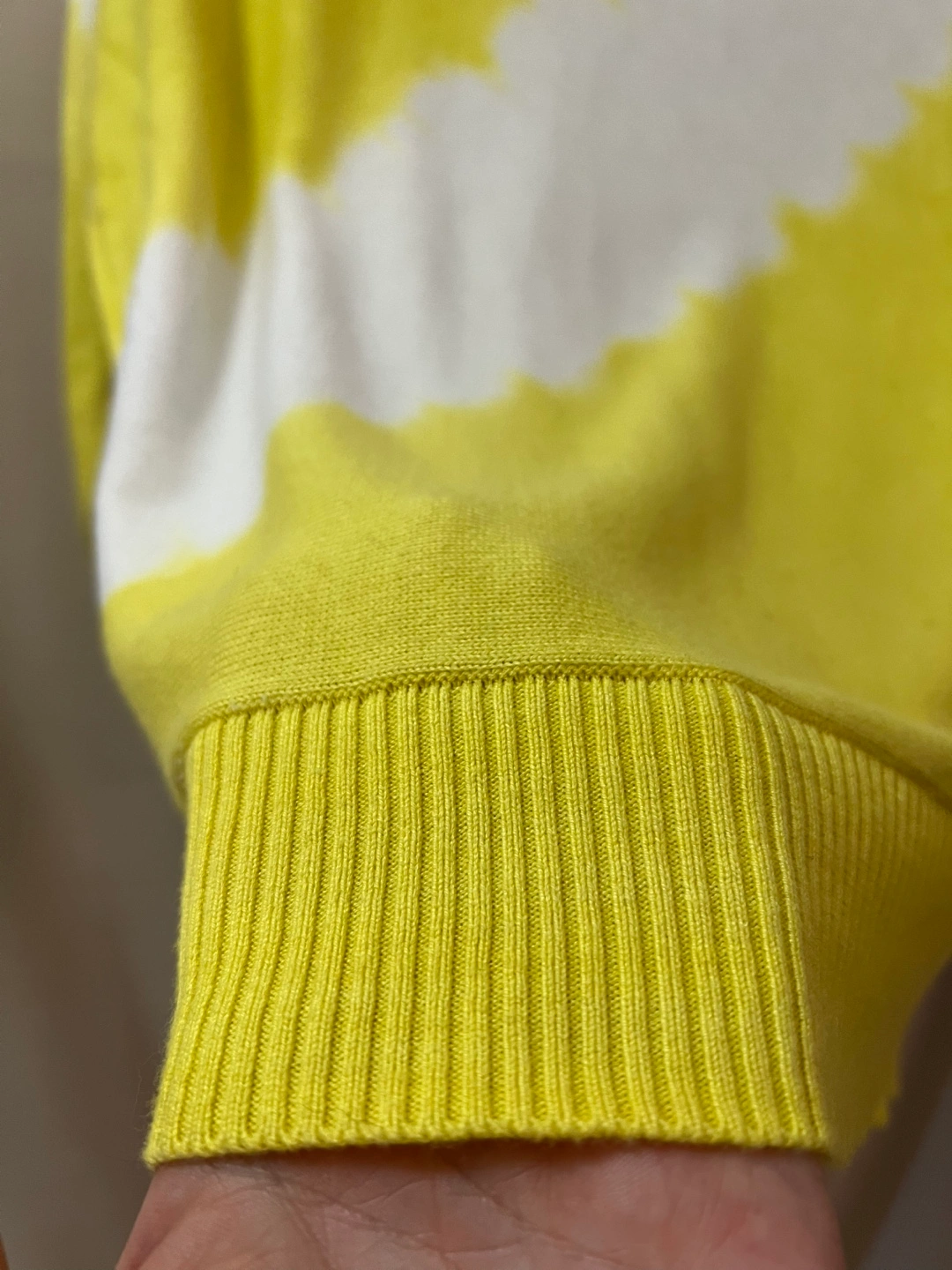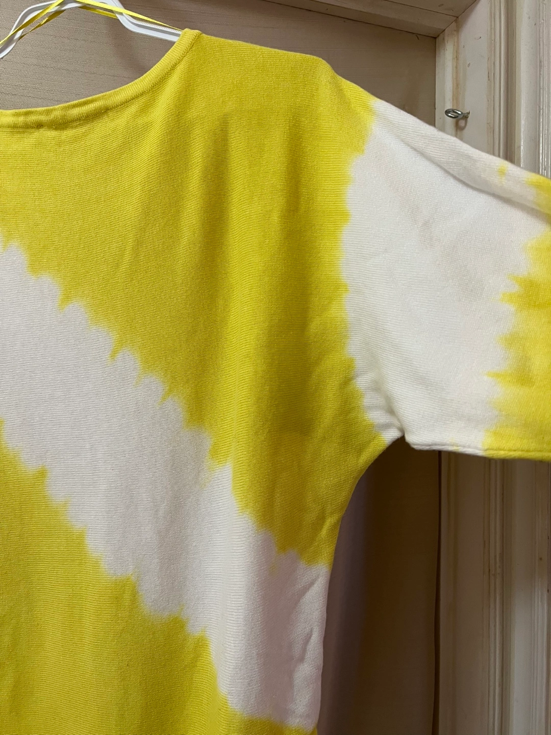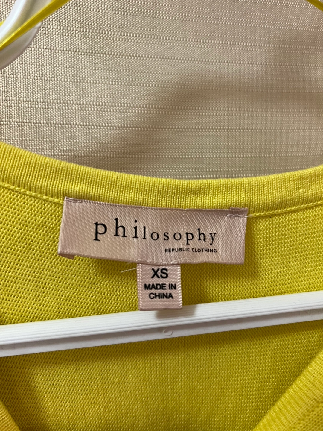 Philosophy yellow and white tie-dye sweater. Size XS. Long sleeves, ribbed cuffs and hem. Ptp- 23 (approx) Length- 25 Arm- 21.5 (approx)