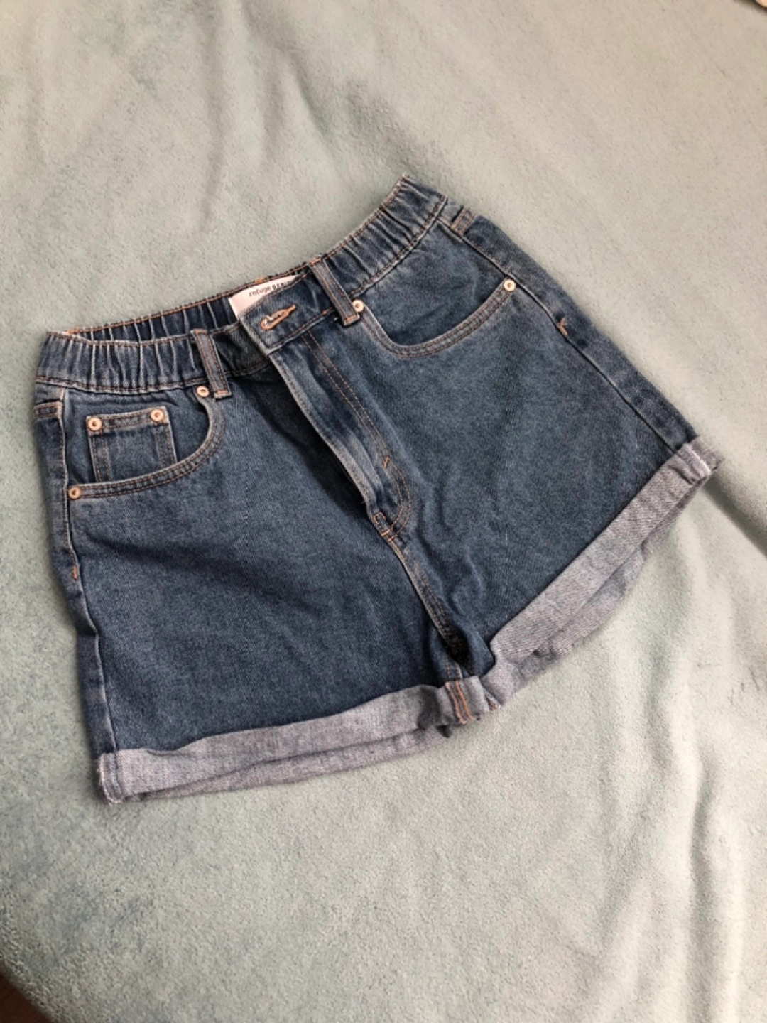 Blue denim shorts. Rolled cuffs. Elastic waistband. Two back pockets. Size 05. Cash/E-transfer only First come first serve Deals if combined with my other listings