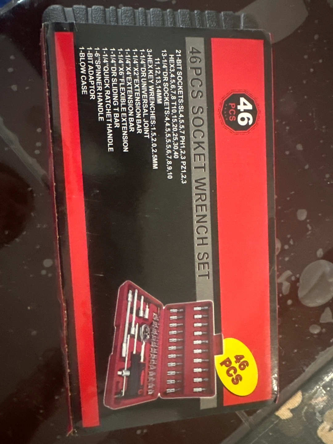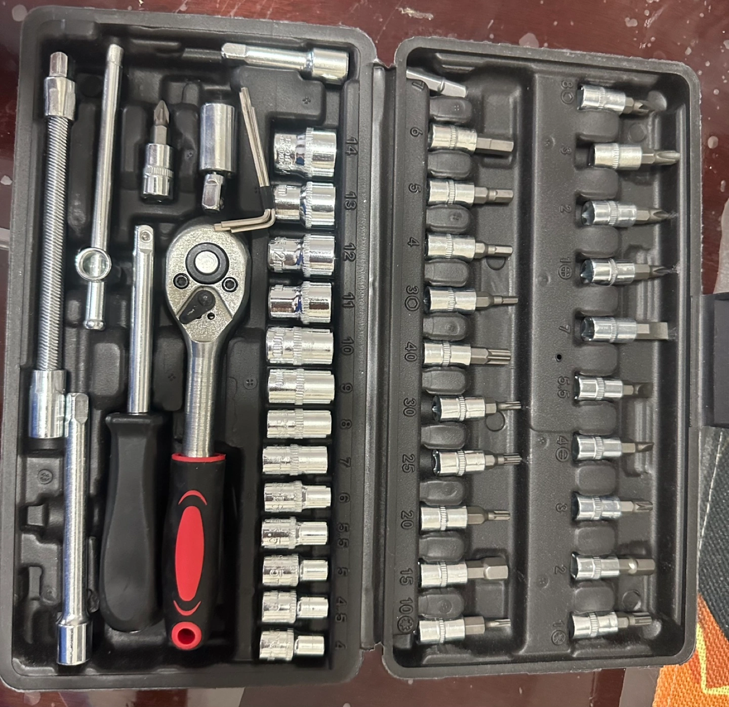 Complete socket wrench set. It includes various sizes of sockets, ratchets, and accessories, all packed in a convenient carrying case. I received it as a gift since I already have one and didn’t need to keep this.