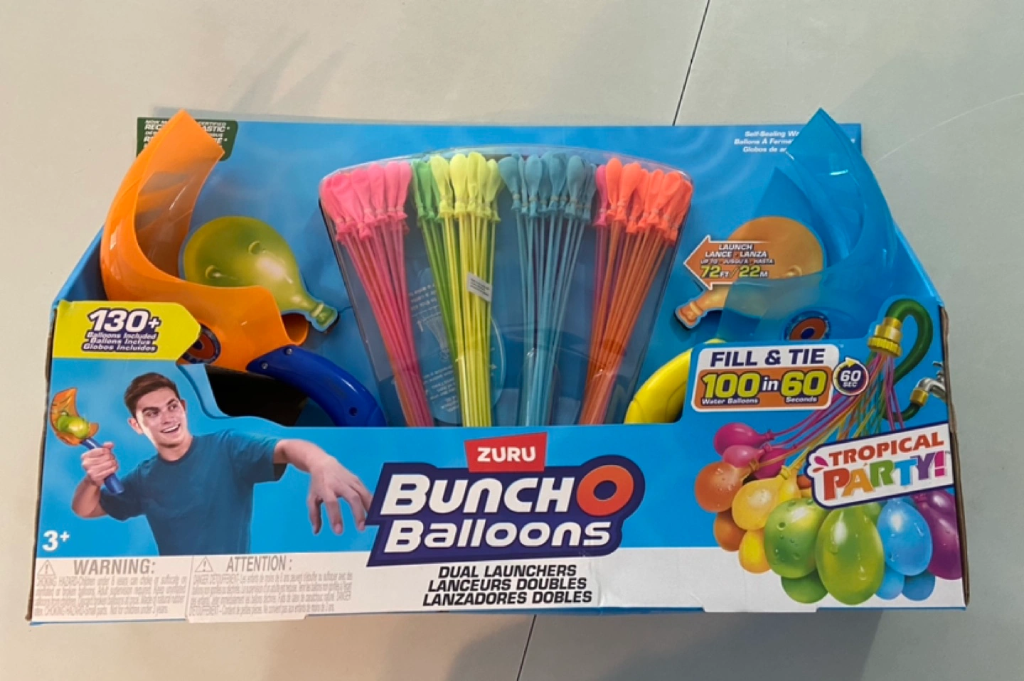 New Bunch O Balloons water balloon launcher. Includes 130+ balloons and dual launchers. Fill and tie 100 balloons in 60 seconds. Great for summer fun!