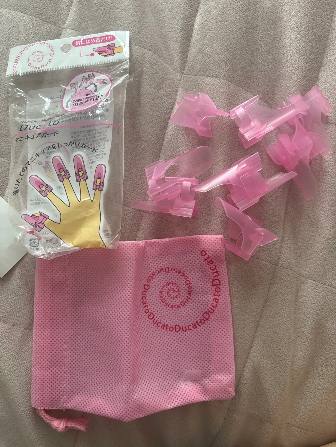 Pink manicure guards. Comes with a mesh storage bag. Perfect for protecting freshly painted nails.