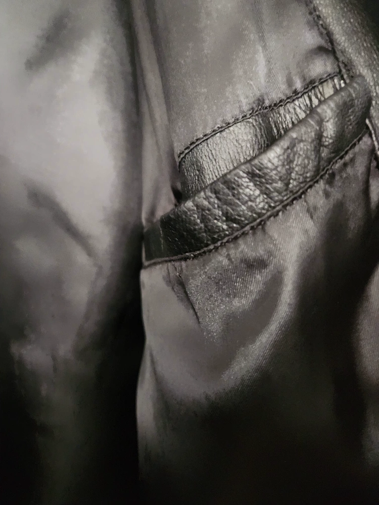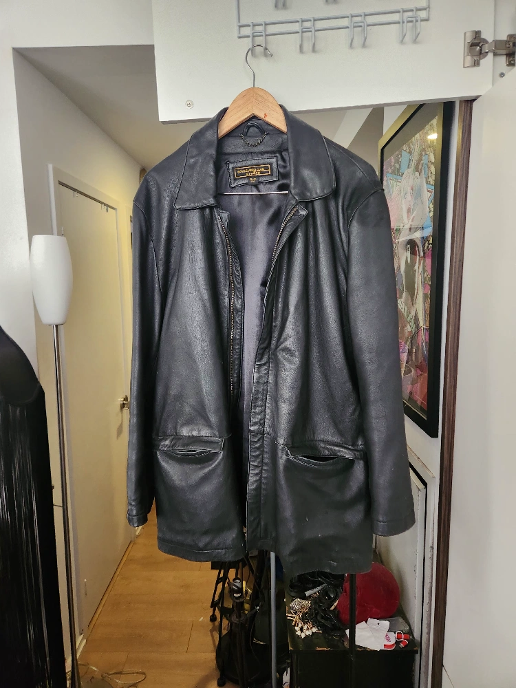 Men's black leather jacket. Size 38-40, M/M. Full zip closure. Two front pockets. Made in China. Really good condition, no wear. 2 pockets on outside, 1 inside pocket. * Cash Only * * No E-transfers * * Pickup Only * * Serious Offers Only!!!*