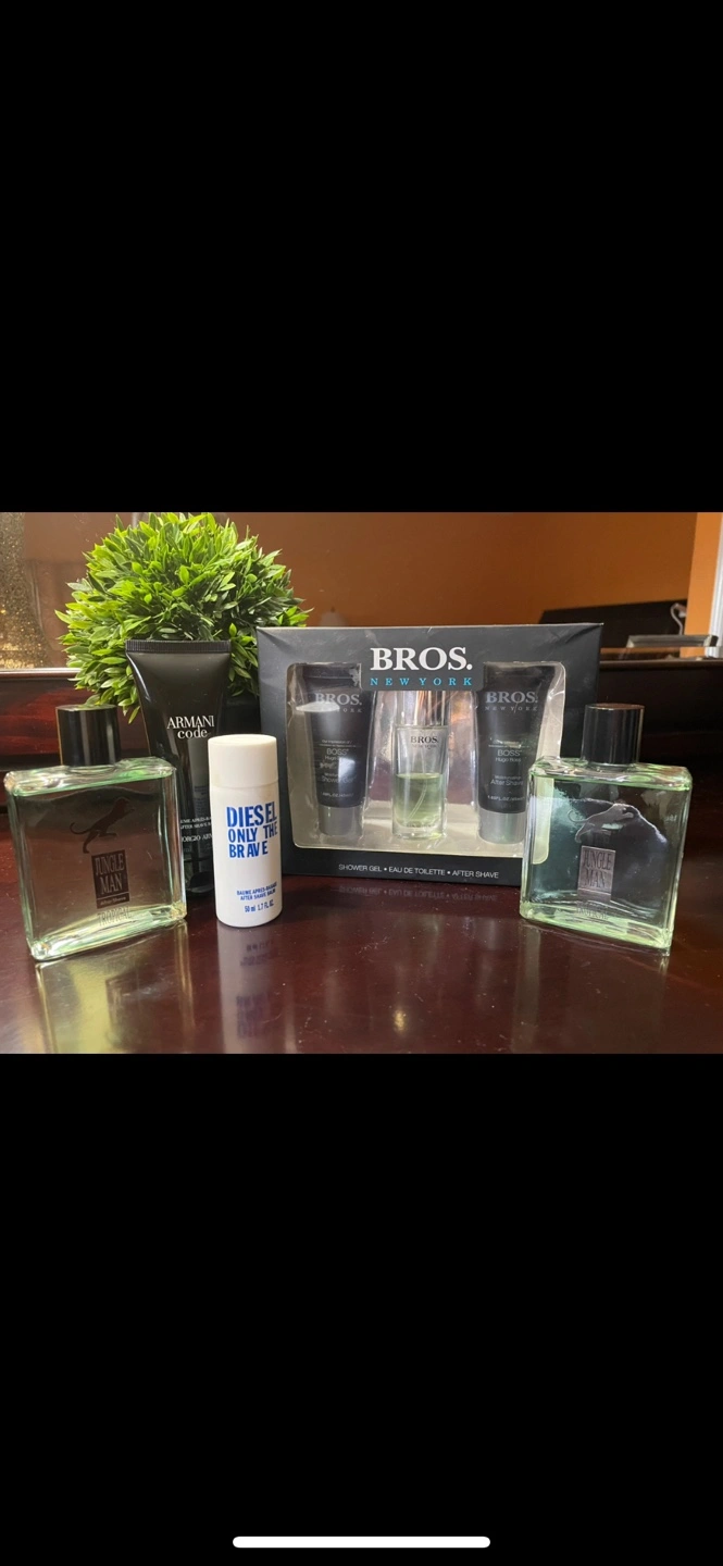 Bundle Men After Shave/Balm includes: 2 X 100ml Jungle man After Shave 1X Armani Code After shave Balm 75ml 1 X Diesel After shave Balm 50ml 1 Set Bros New York Shower Gel Hugo Boss Fragrance 45ml, 1 X After shave Moisturizer 45ml and 1 small Eau de toilette 15ml Great gift or for personal use.