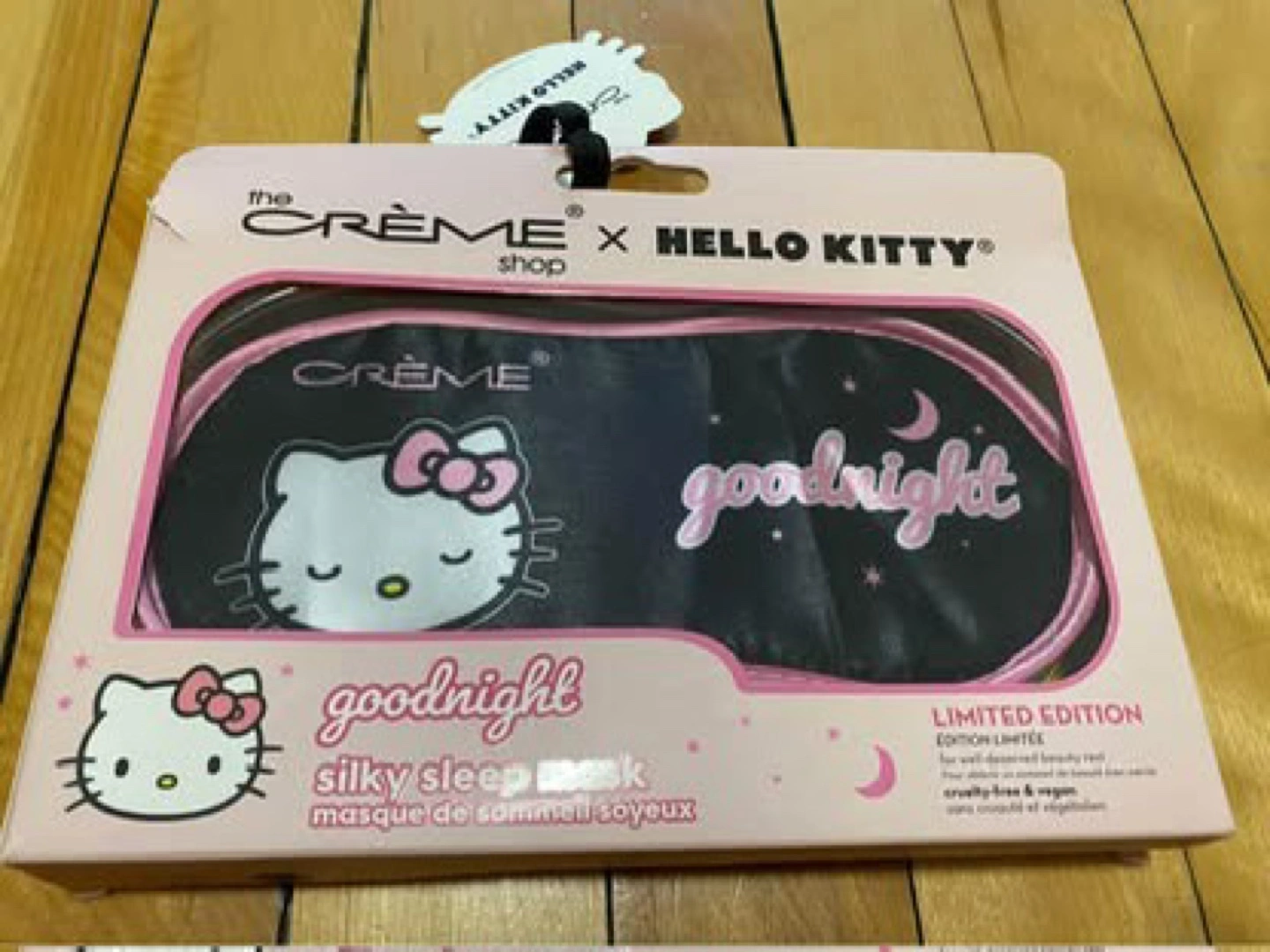 Brand new, limited edition Hello Kitty sleep mask. Silky soft fabric. Features Hello Kitty and goodnight message. Perfect for travel.