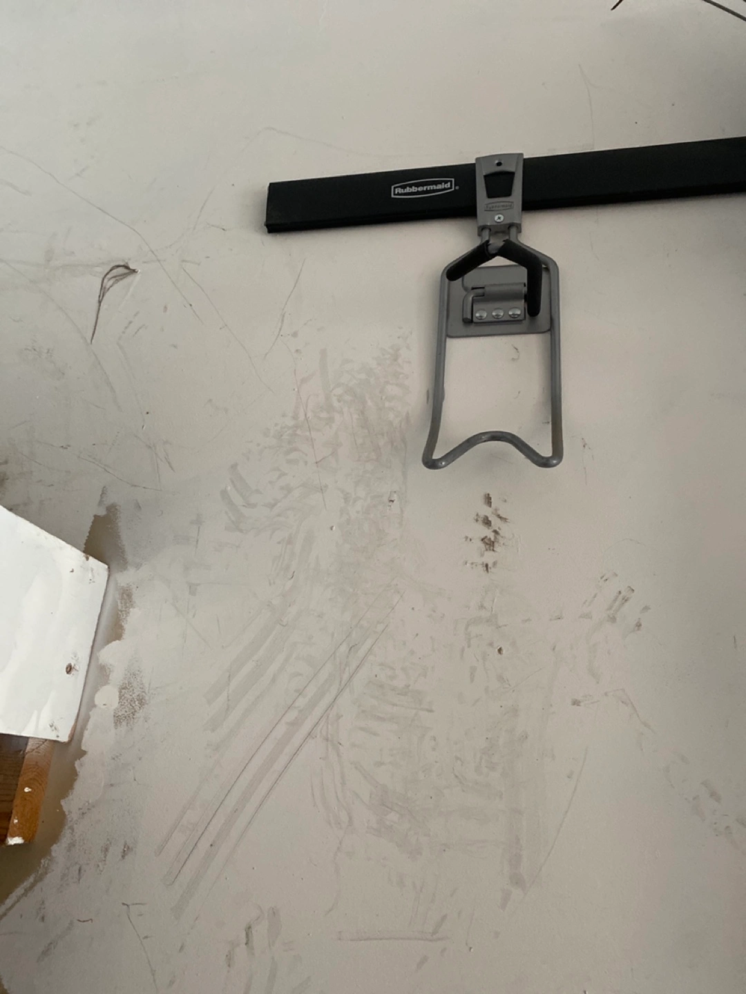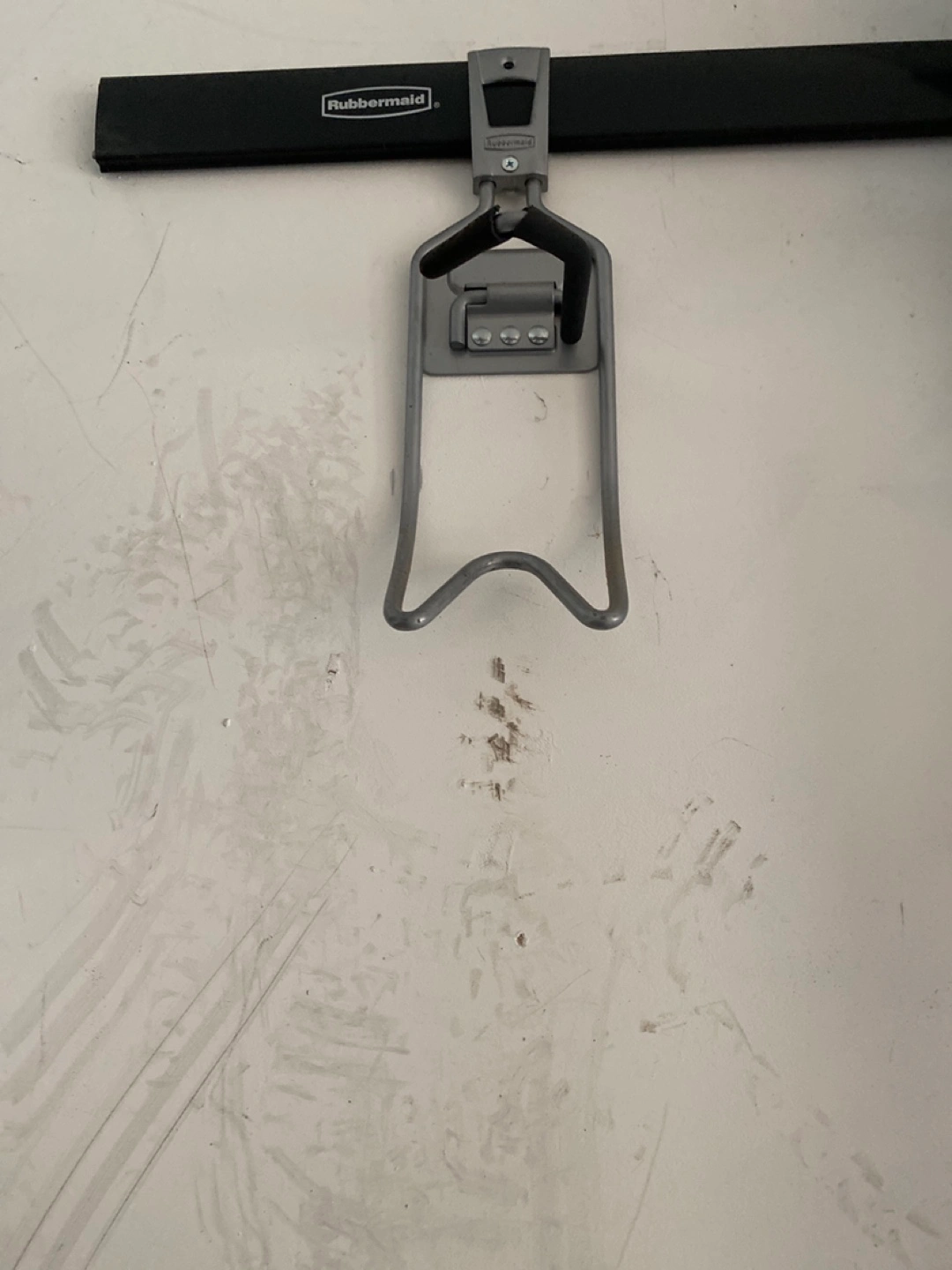 Wall-mounted bike rack. Grey metal construction. Rubbermaid brand. Attaches to a wall. *Only selling the bike rack. X2. *You need a Rubbermaid wall mount for this * 2. dollars. Each. X 2. Or best offer