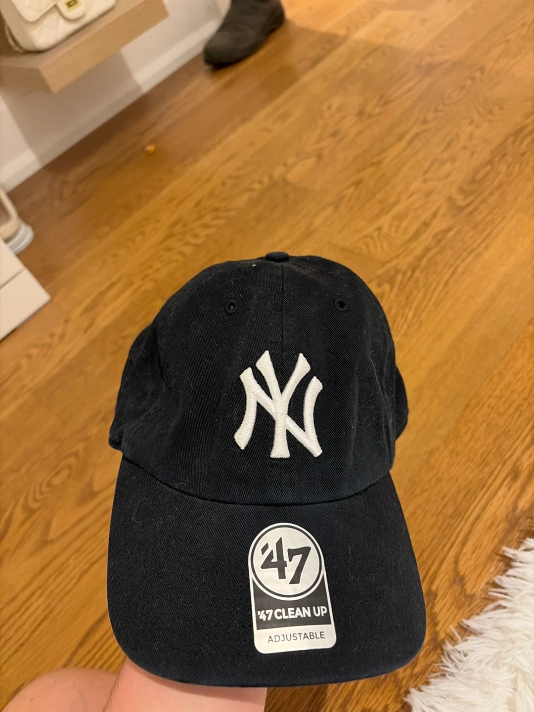 Selling a '47 Brand New York Yankees baseball cap! It's black with the classic NY logo embroidered on the front. The back is adjustable for a comfy fit. Perfect for showing off your team spirit!