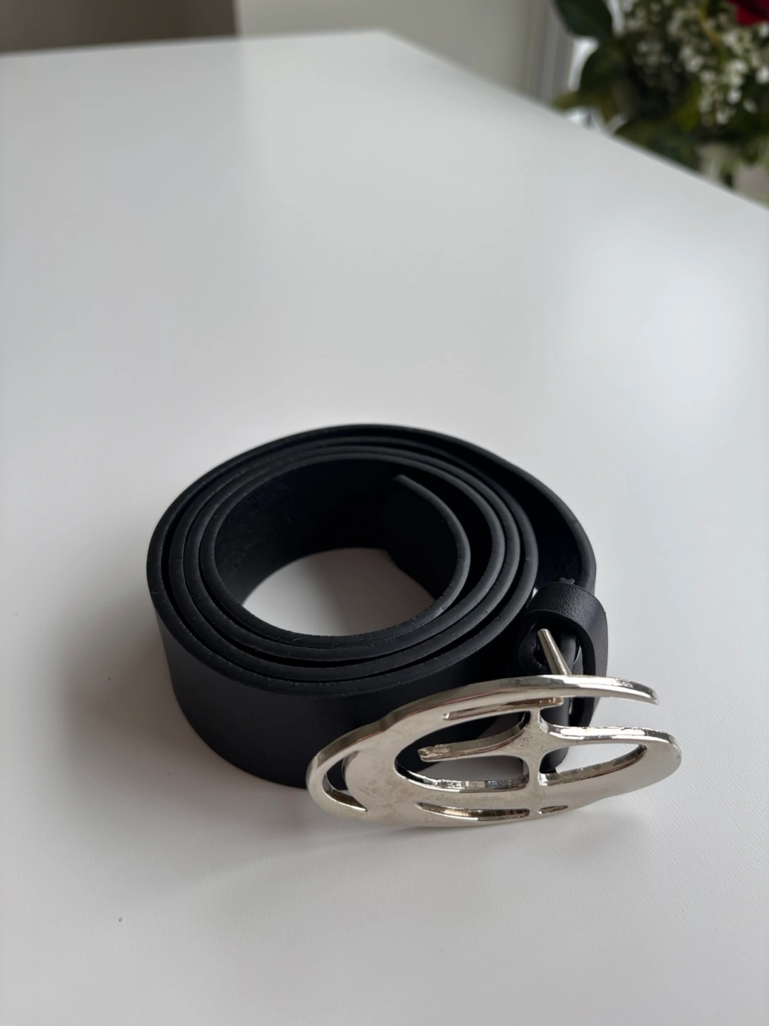 Sleek Black Leather Belt – size adjustable! Features a silver-toned, abstract buckle. Perfect for adding a touch of edge to any outfit. Pick up at Lonsdale Quay or $5–$10 delivery fee depending on location. Cash only!