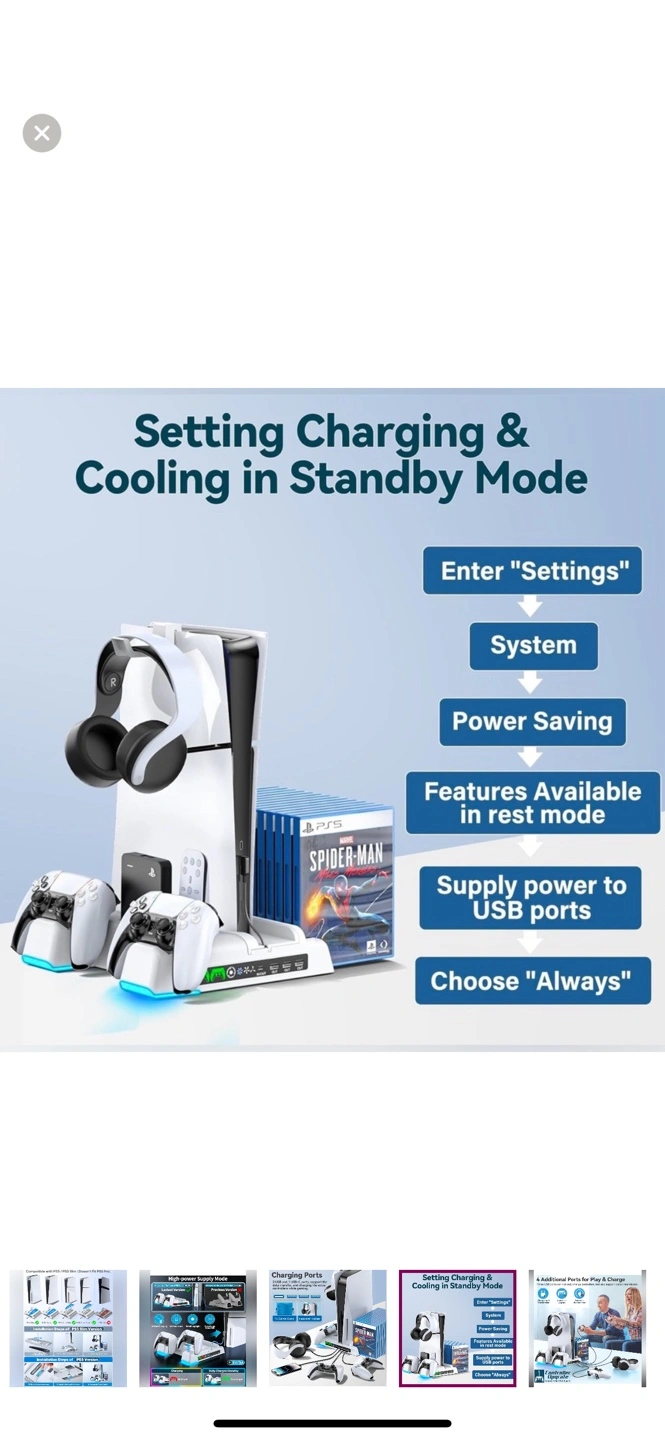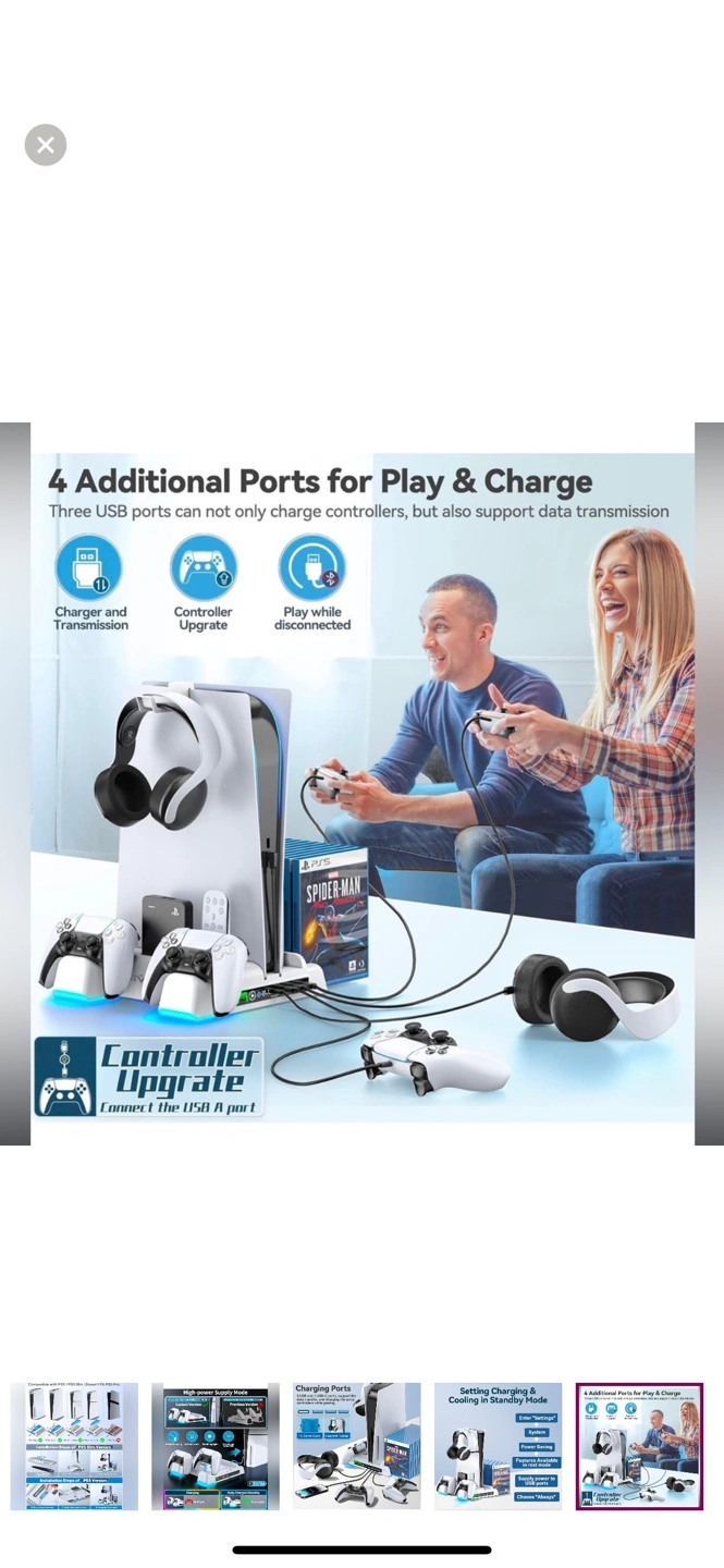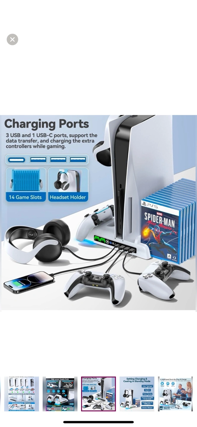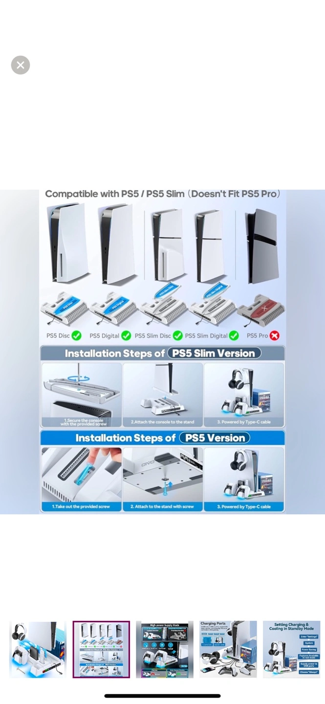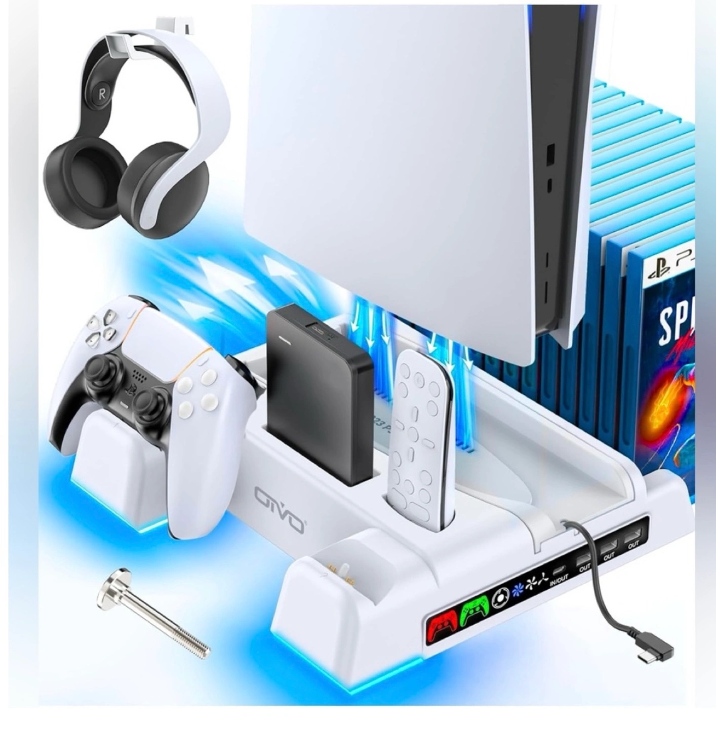 Important Note : Doesn't fit PS5 Pro console (CFI-7019B01X). Multifunctional Design for 2020/2023 Slim Playstation 5 Digital Edition and Disc Edition Consoles: This stand for ps5 is suitable for both ps5 console digital edition, ps5 console disc version and 2023 PS5 slim console (CFI-2000A01, CFI-2000B01) .Comes with a screw to lock your ps5 console that keeping all cargador mando ps5 gaming assecorries secure and balanced,and a ps5 slim adapter to fit your new console. The whole white color also matches the aesthetic of playstation 5 console. A perfect ps5 storage expansion charging dock to safely store dual sony dualsense controllers and display all ps5 assecories and console. 4 Built-in Charging Ports and 3 Level PS5 Cooling Fan: The ps5 slim cooling station is upgraded with powerful 1.63inch enlarged turbo to improve cooling efficiency, is convenient for gamer who charging 4 different devices at the same time. The OIVO PS5 cooler stand vertical is equipped with a touch switch and 3 Level Cooling Fan, that suck hot air from the bottom of the console and effectively dissipate heat in all directions. It's a ideal soporte ps5 slim accessory for gamers men. Dual High-Speed PS5 Controller Charger Station and LED Indicators: Use Playstation 5 charging station to refuel dual PS5 dualsense controllers with charging cable in less than 2 hours simultaneously.l