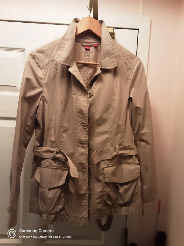 WOMEN BELTED , POCKETS SPRING CASUAL JACKET LIGHTWEIGHT SAIZE 8, LIKE NEW.