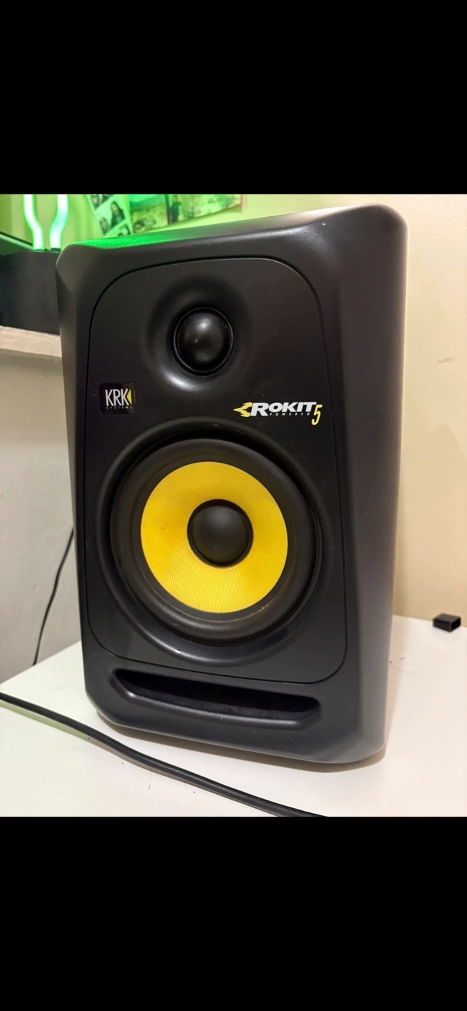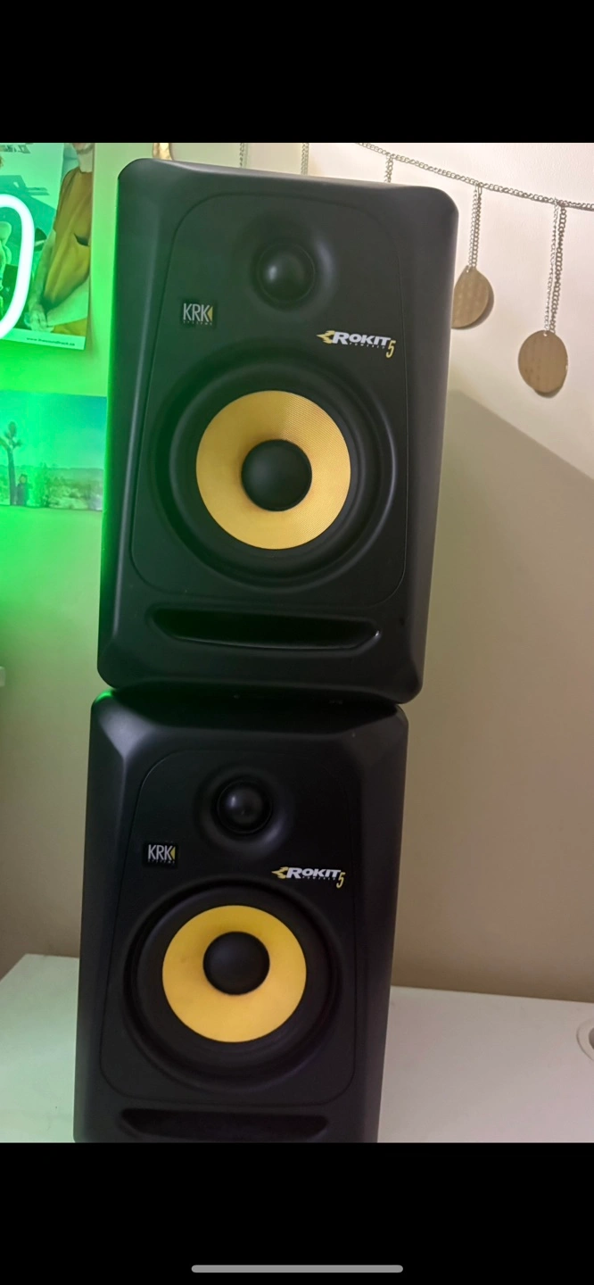 Studio monitors, black. Excellent sound quality. Great for music production and mixing.