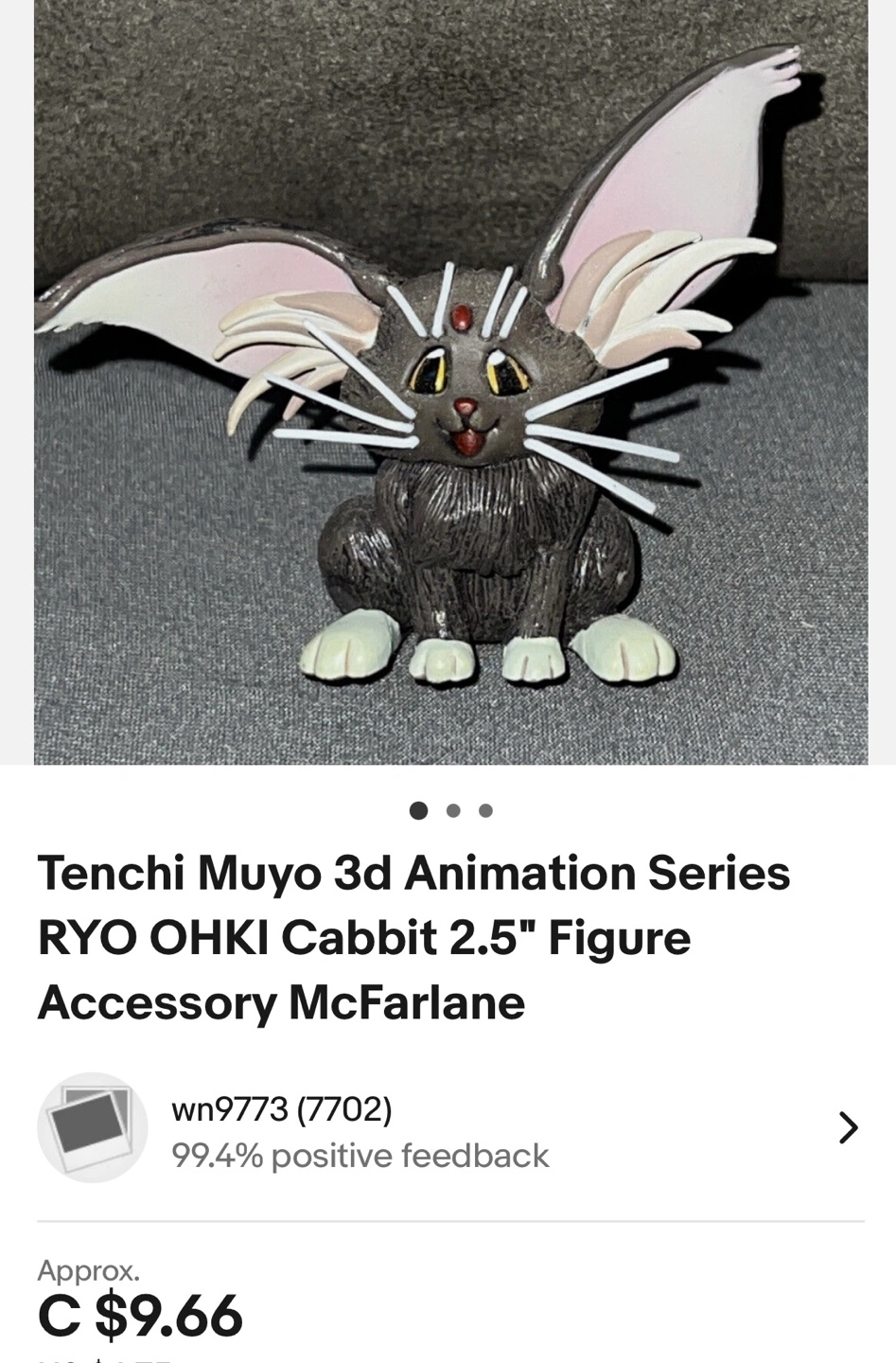 EUC Tenchi Muyo 3D animated series RYO OHKI Cabbit figure. Measurements are shown in the pictures. Last picture is for price reference only. Selling both together for $8. Cross posted.