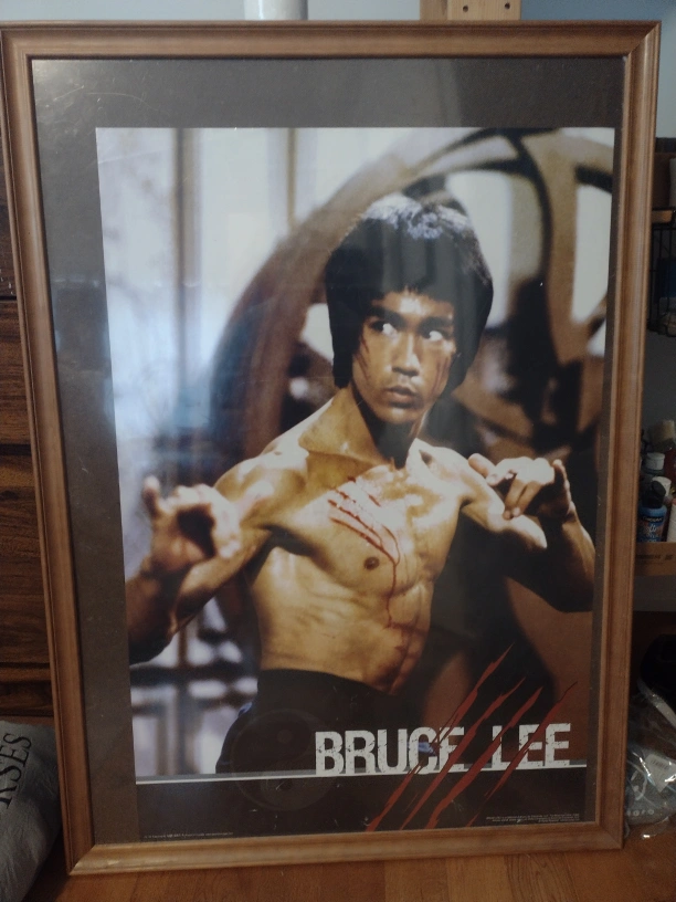 Vintage Bruce Lee poster in a wooden frame. Great for collectors or fans. Shows some wear. who is BIG fan of BRUCE LEE this is good for you