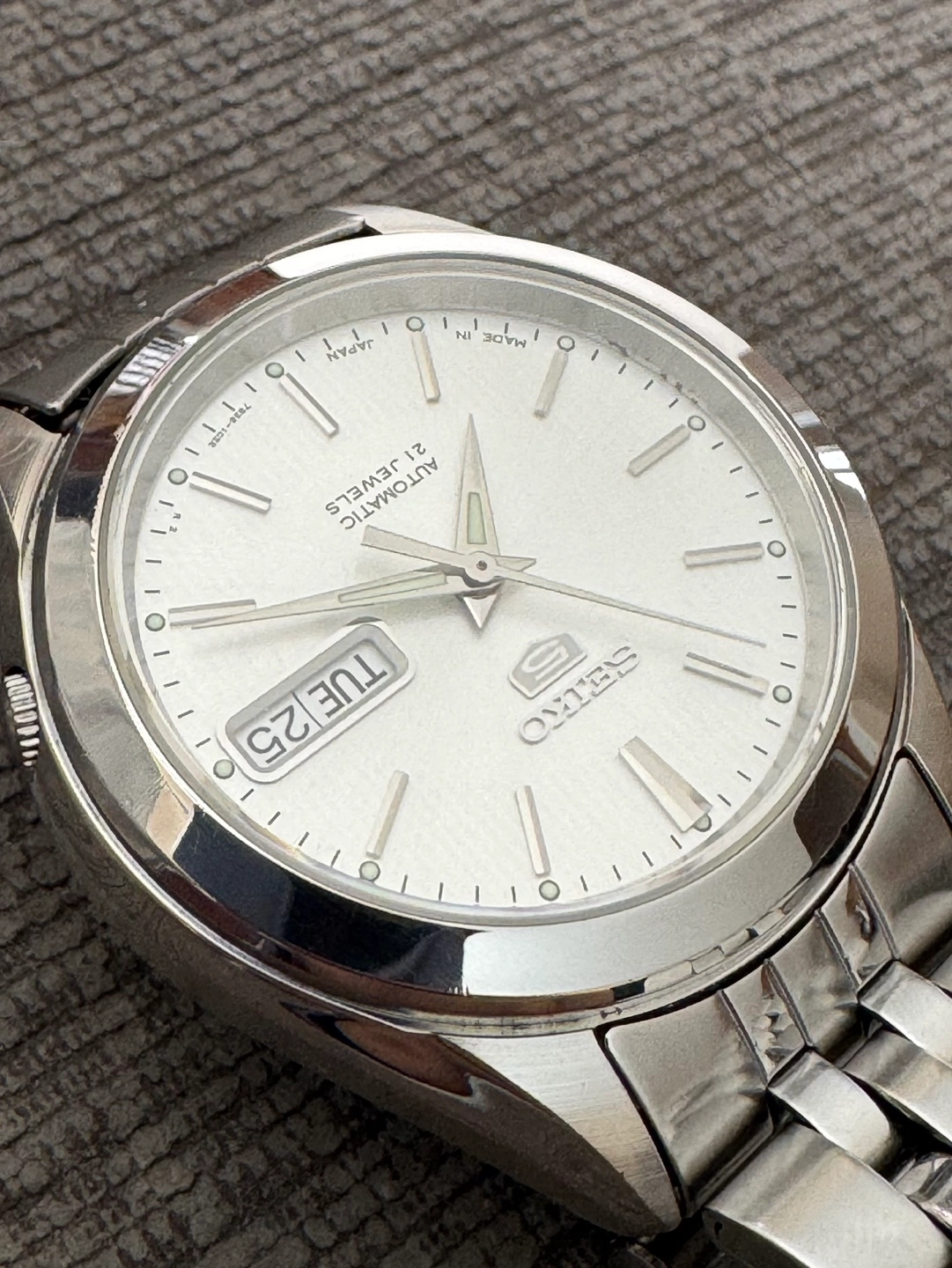 PLEASE READ DESCRIPTION FOR DETAILS AND SIZING BEFORE BUYING - Excellent condition, fully functional - 37mm across case size, bracelet fits up to 7.25” wrist - Made in Japan - Automatic - Silver dial Price is firm. Pickup Markham or downtown Toronto. Can ship at buyers expense. No holds without deposit, first come first served. If you like this watch, check out my other listings for similar watches! Buy multiple for a small discount