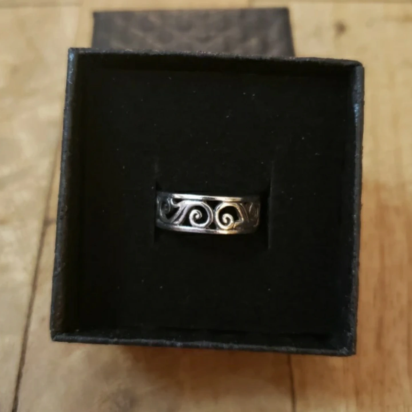 Handcrafted 925 sterling silver ring, with a filigree wave design. Comes in a black gift box.