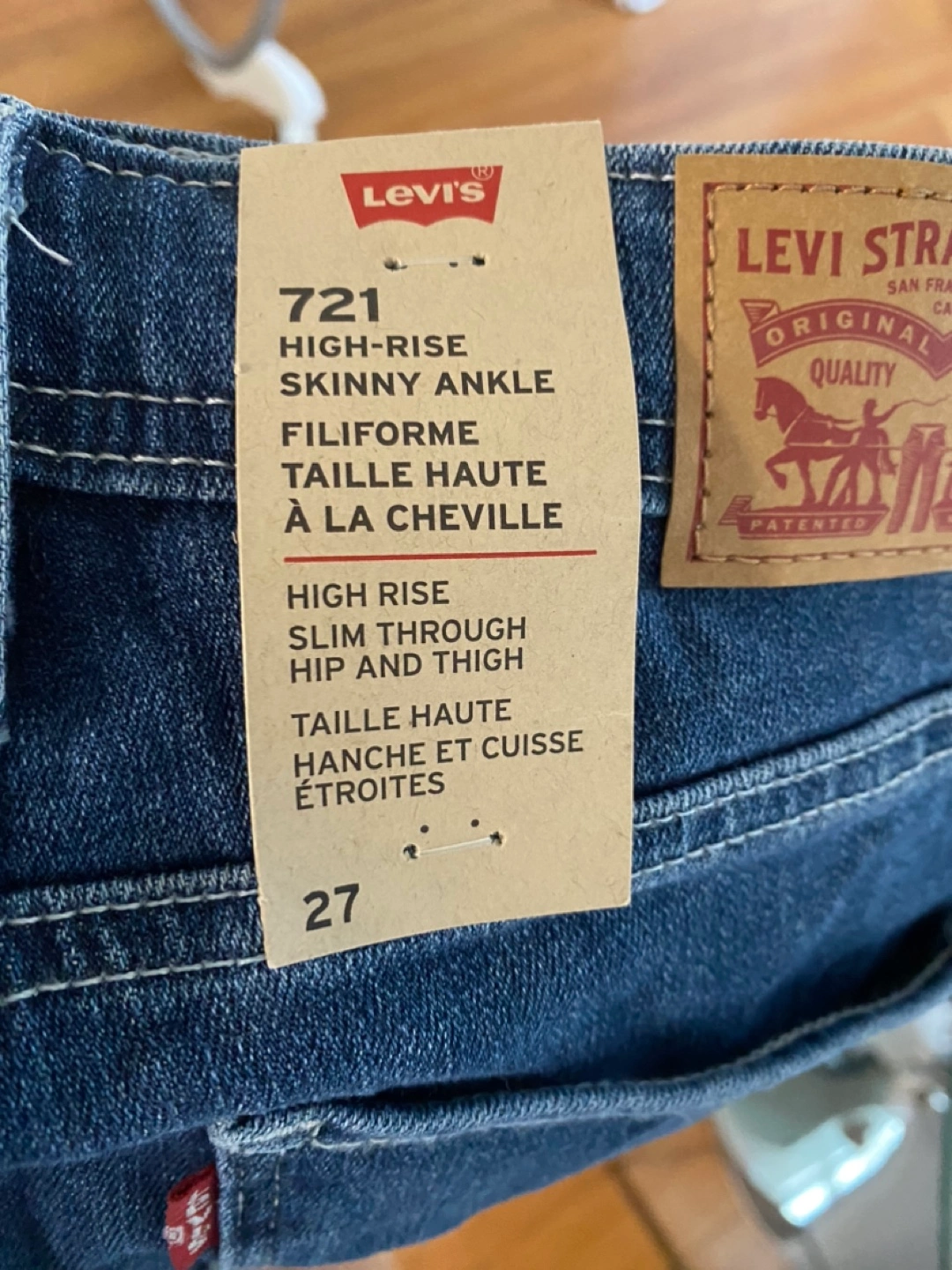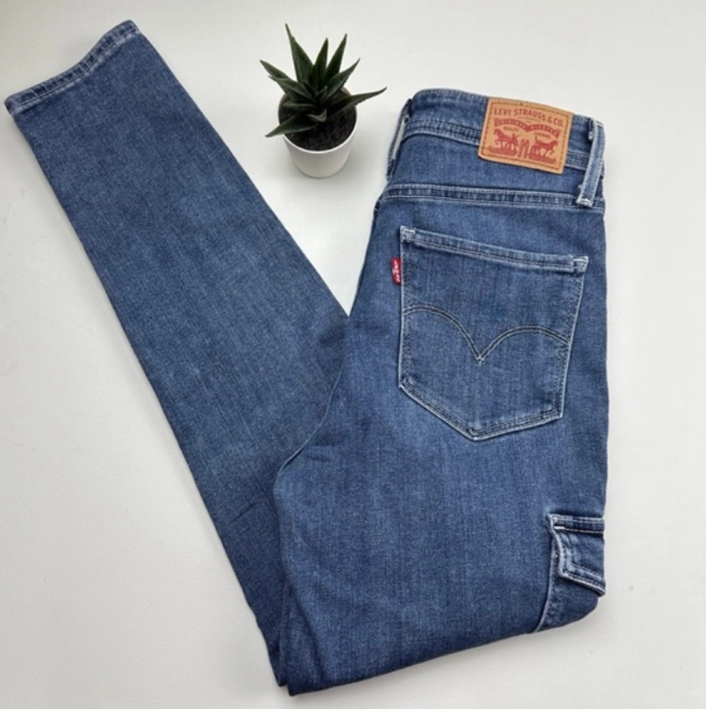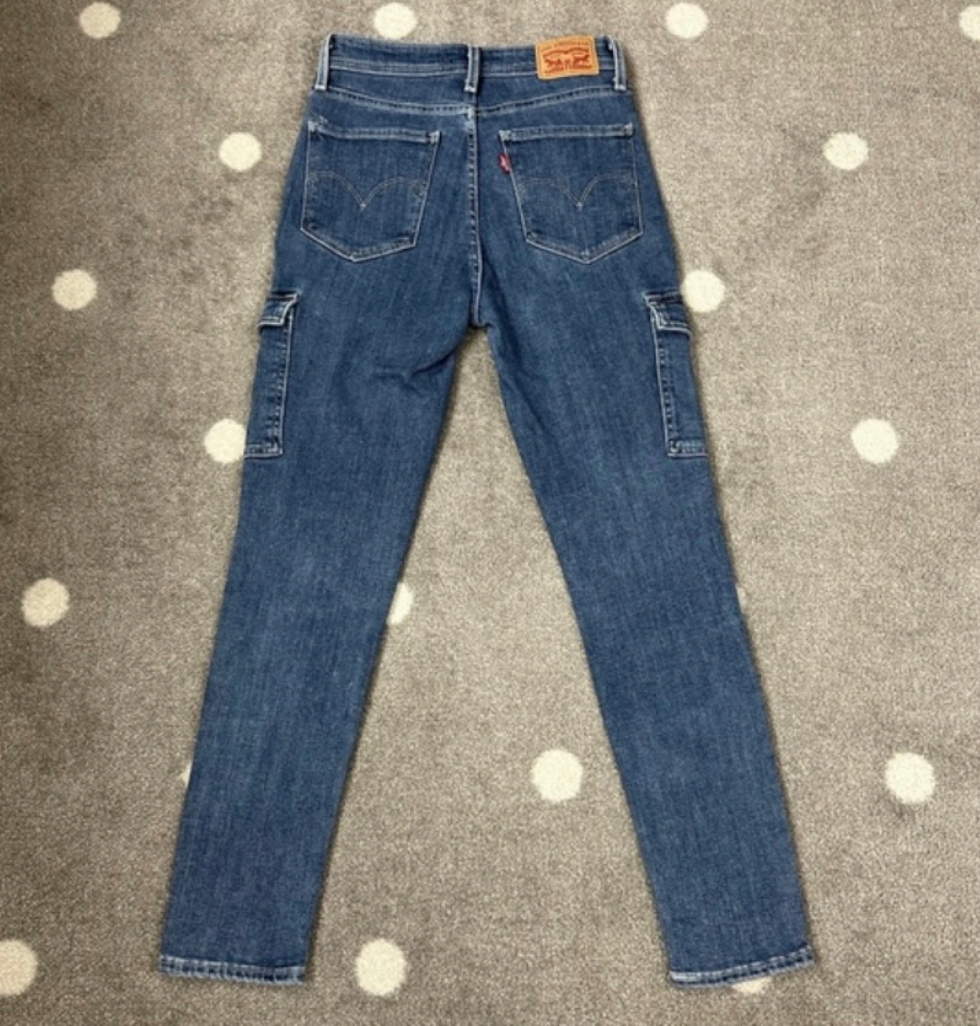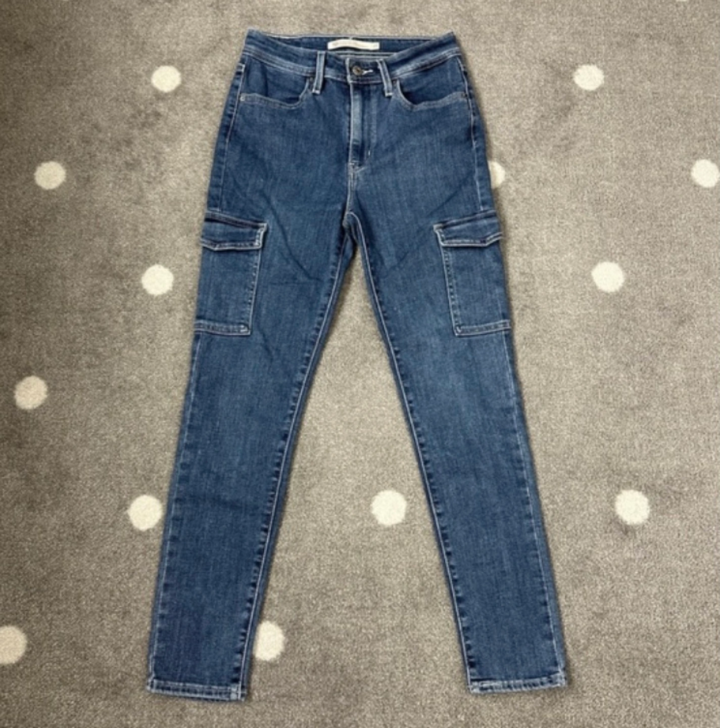 Women's Levi's 721 high-rise skinny ankle jeans. Dark wash denim. Features cargo pockets. Size 27.