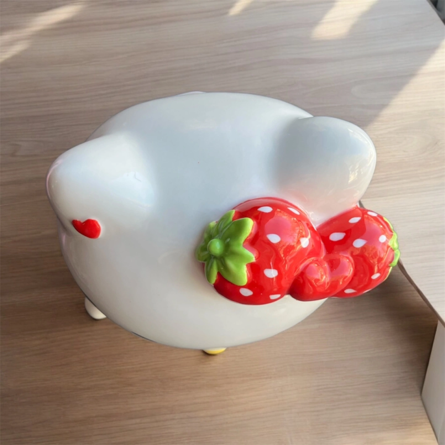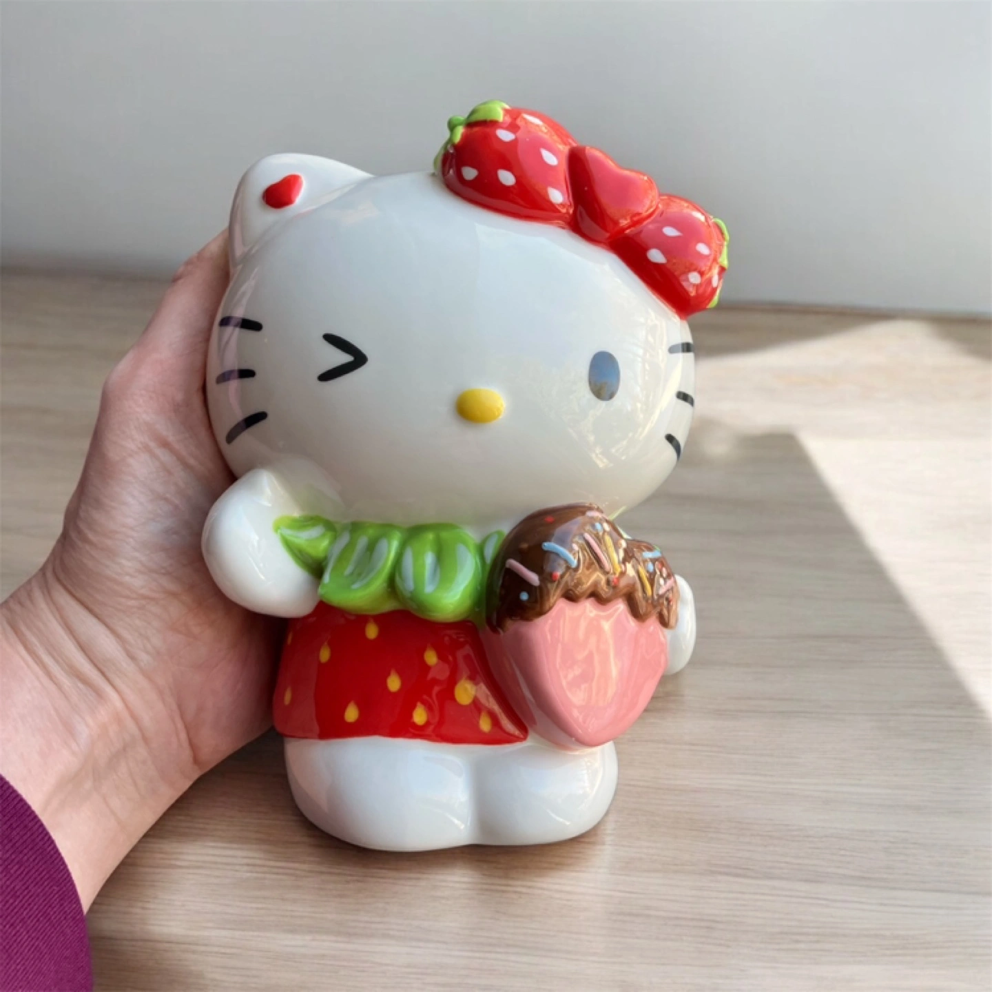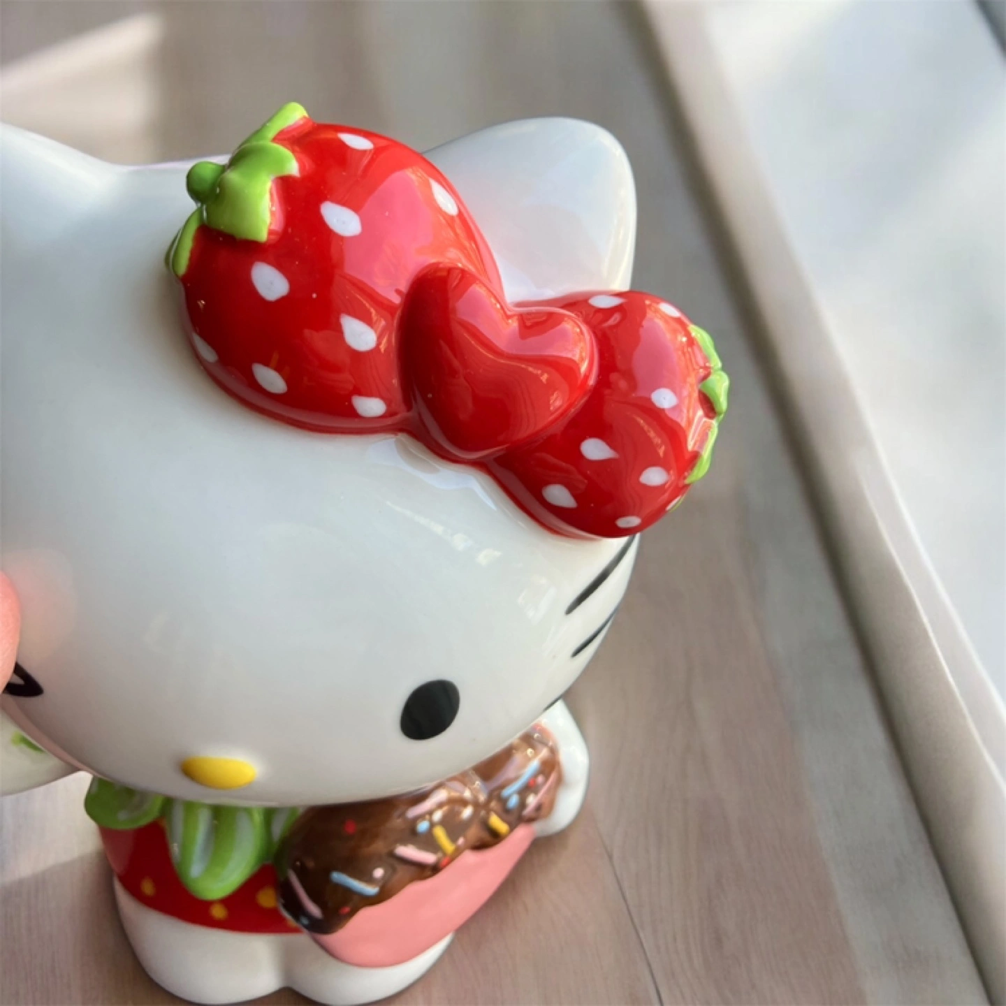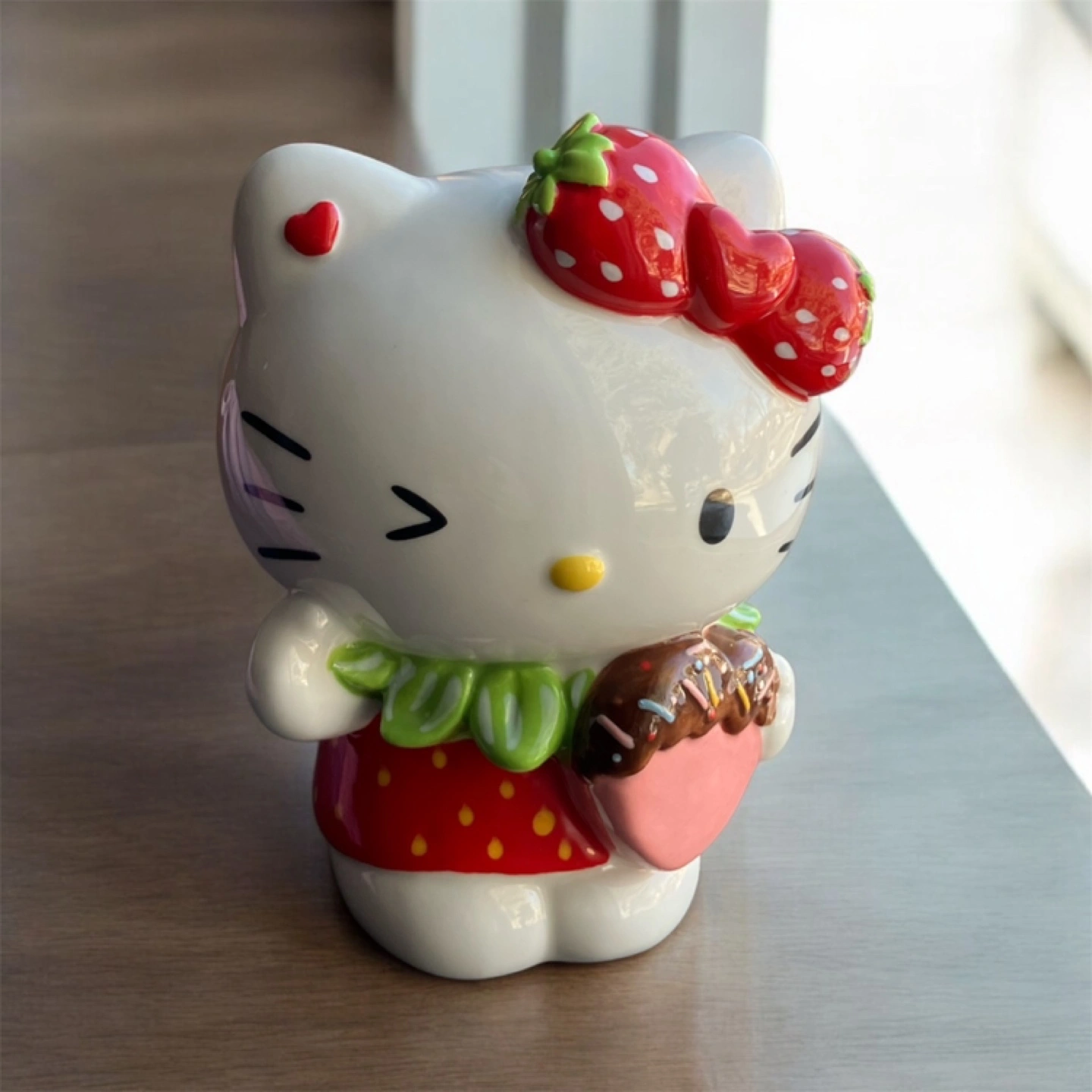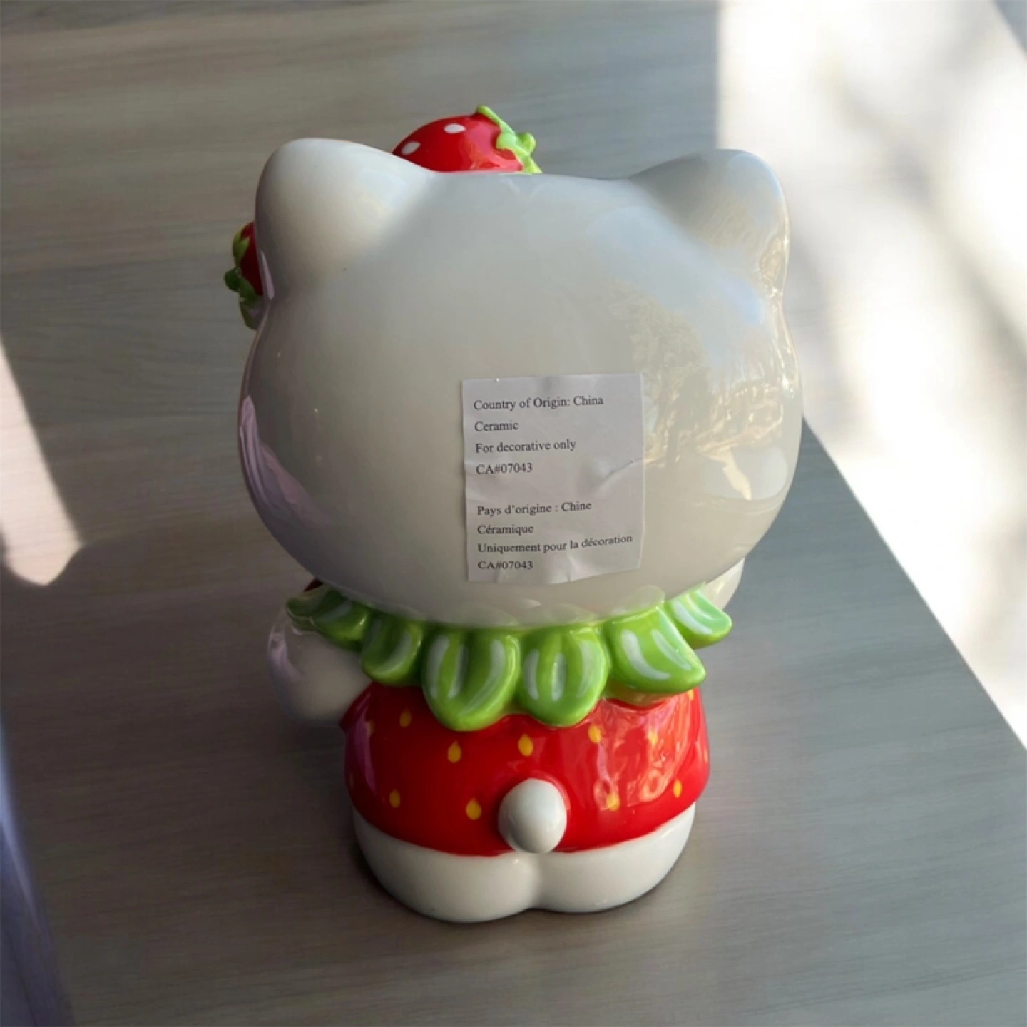 NWOT Charming Hello Kitty ceramic figurine - features Hello Kitty with her strawberry heart bow and matching strawberry dress. Holding an icing covered heart shaped cookie and winking this is a perfect gift for Valentine's Day, Mother's Day, Birthday or for all Hello Kitty fans! Add a touch of sweetness to your Hello Kitty collection with this Blue Sky Clayworks figurine! Measures approximately: 6.5"H x 4" (at the widest part of head) I ship using recycled material within my home to reduce waste. The package will be wrapped with care if requested or deliver for a fee