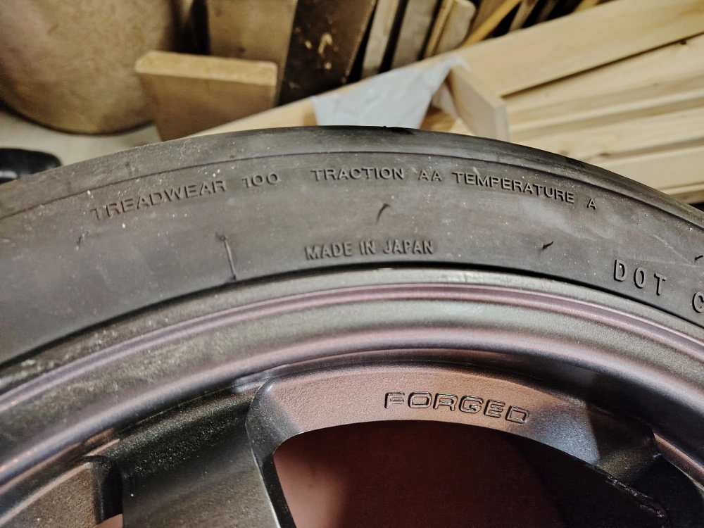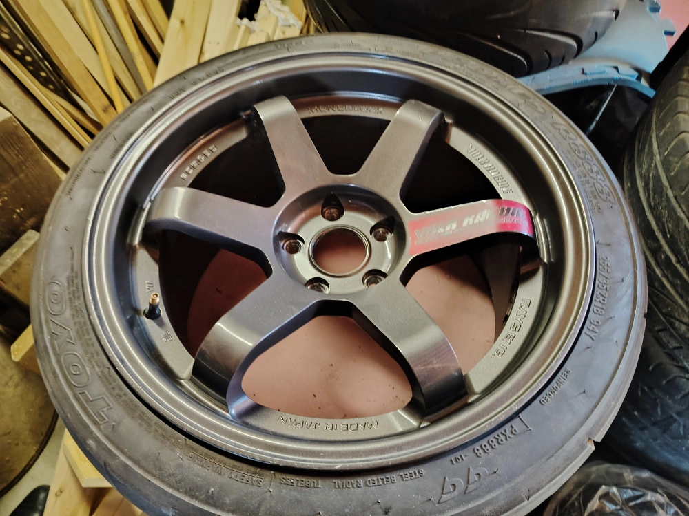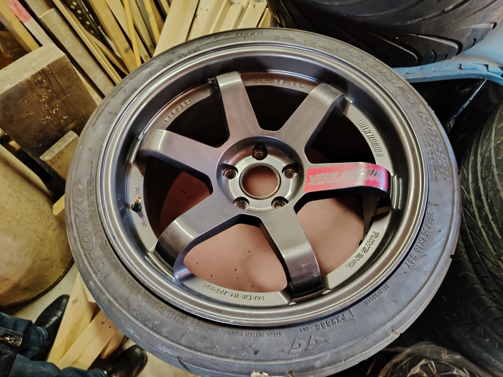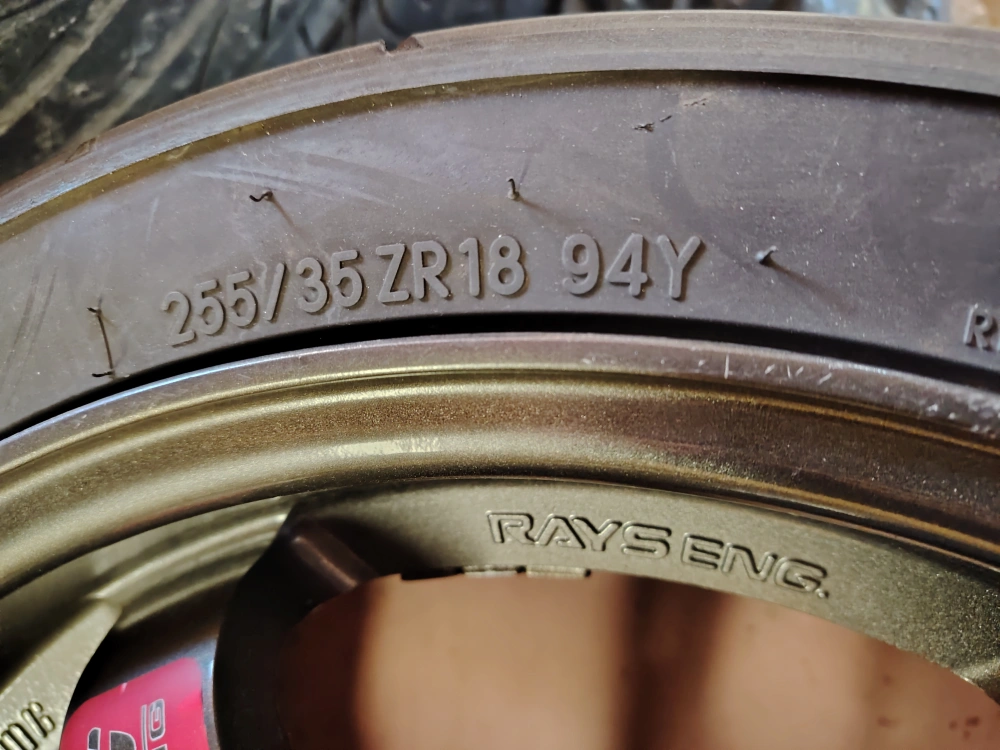 Rays Engineering forged 18" wheels. Mounted with 255/35ZR18 tires. Made in Japan.