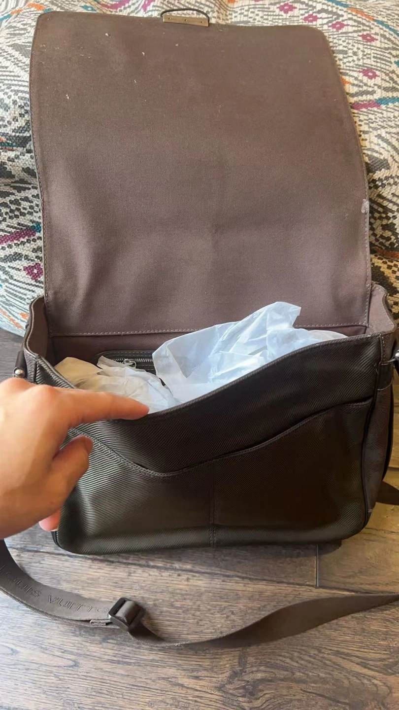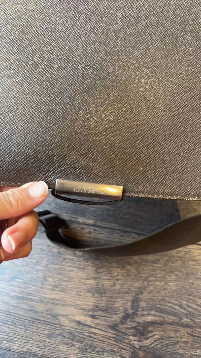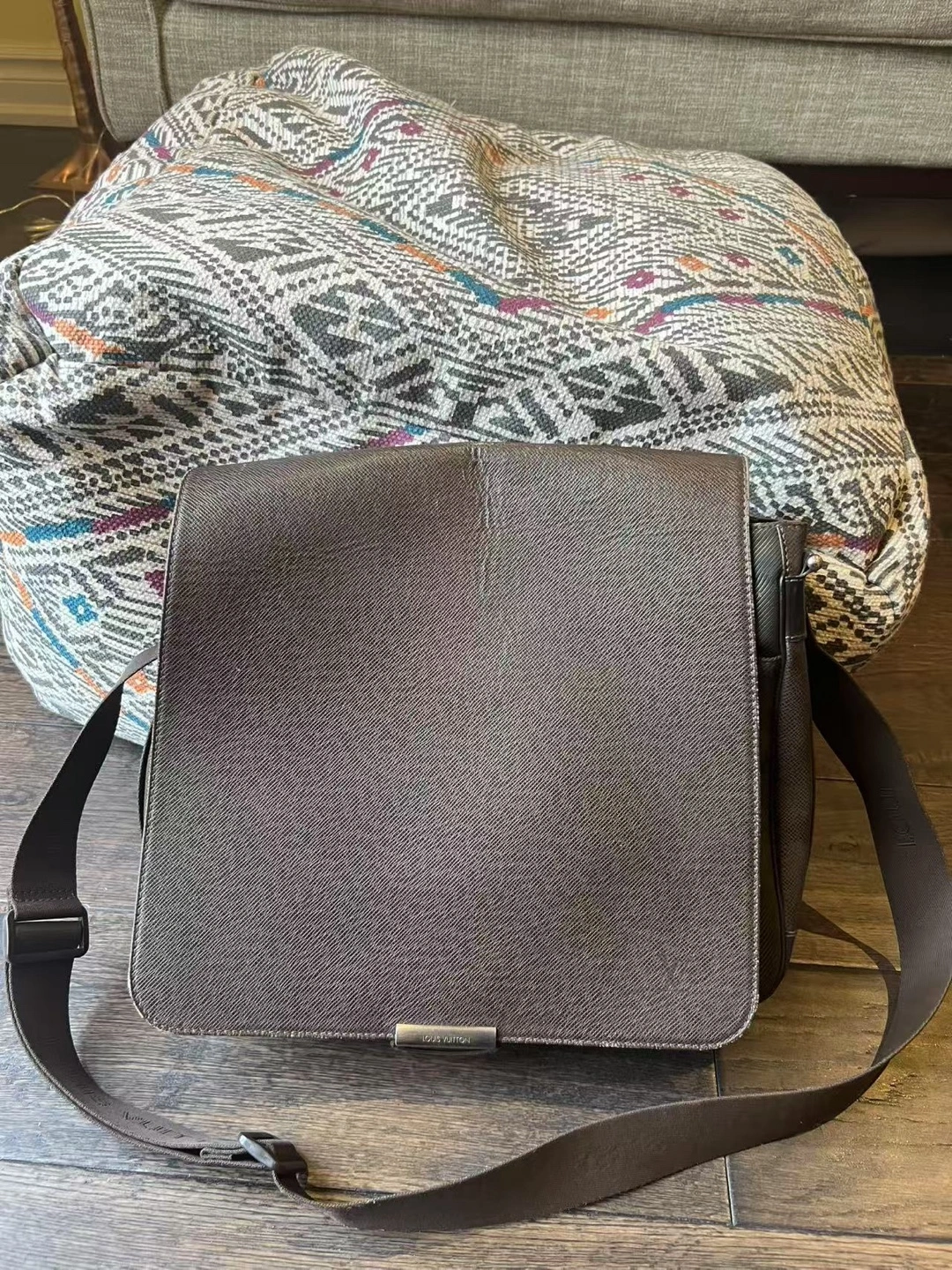 Brown leather messenger bag. Adjustable shoulder strap. Interior pockets. Monogram Empreinte leather. Authentic see condition