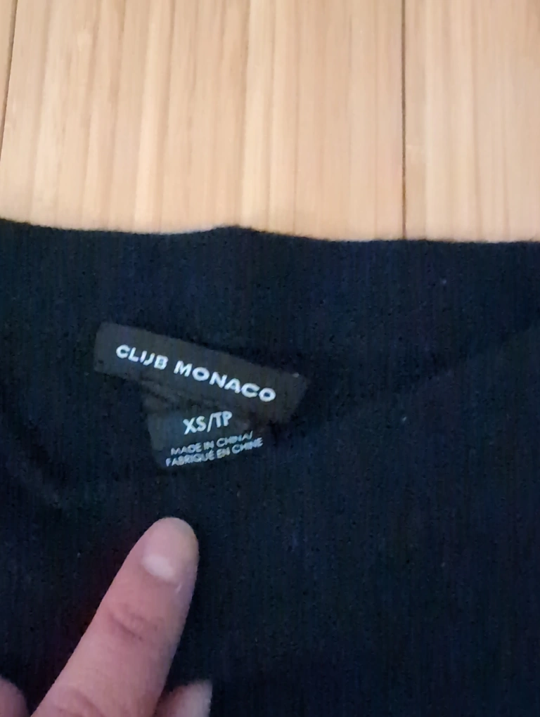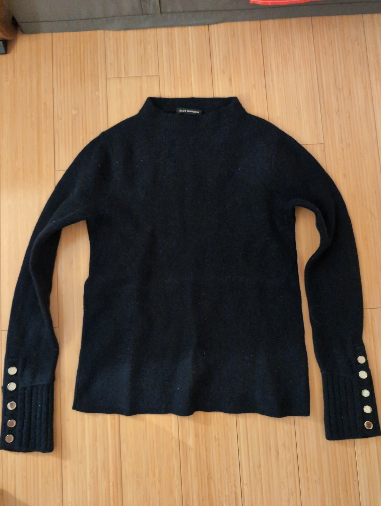 Black mock neck sweater. Long sleeves with button cuffs. Size XS. fits very small