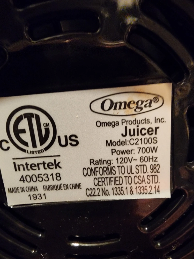 Omega juicer, model C2100S. 700W power. Stainless steel and black plastic. Includes pulp container and other parts. perfect working condition. Was used only once. Selling because I have a Breville juicer I like better.