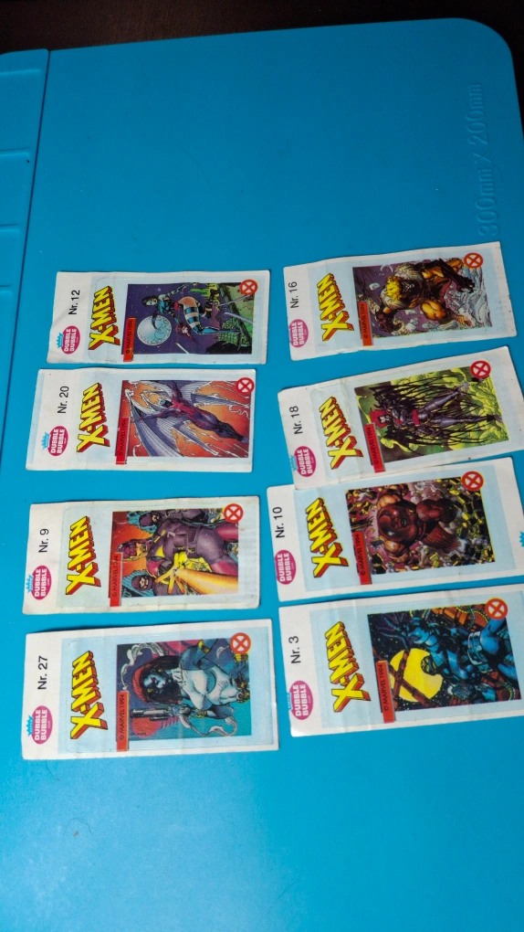 from double bubble gum - Collection of eight vintage X-Men stickers Each sticker features different characters from the Marvel Comics. Some wear and tear expected.