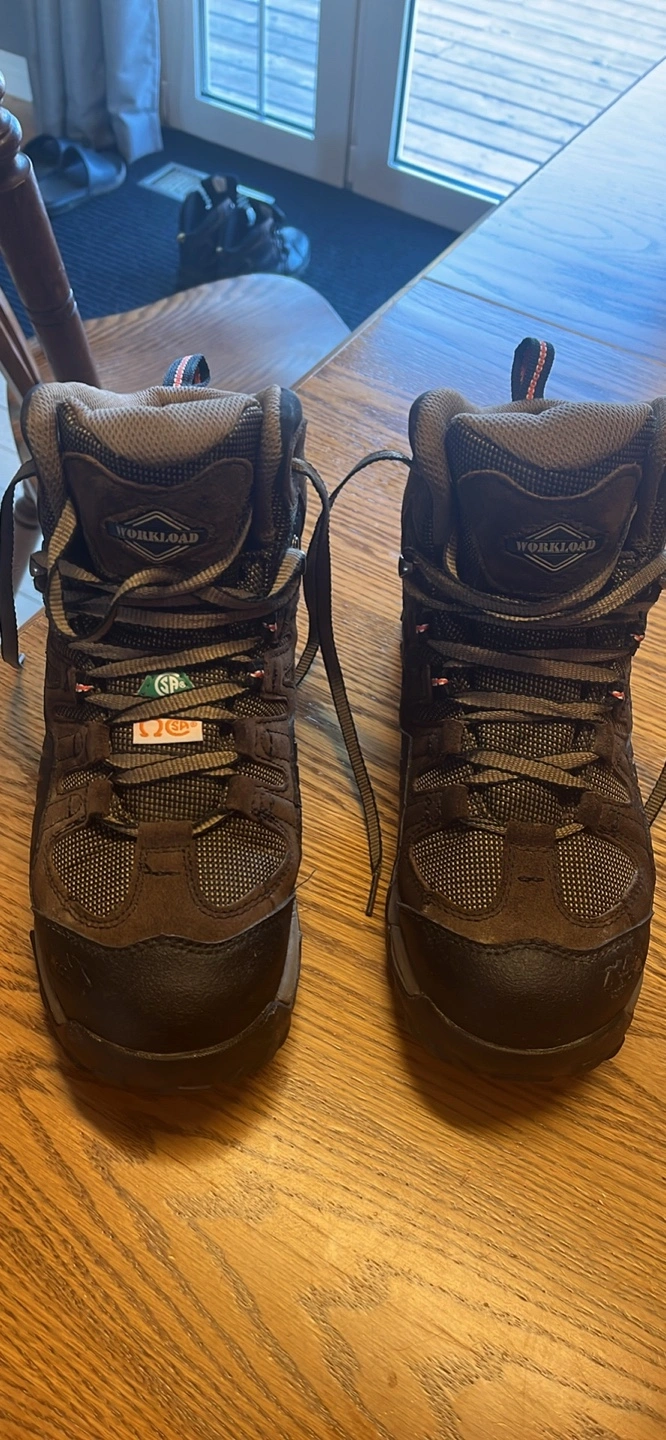 Brown work boots. Lace-up style. Good condition. Size 7. Only worn 4 times CSA steel toe