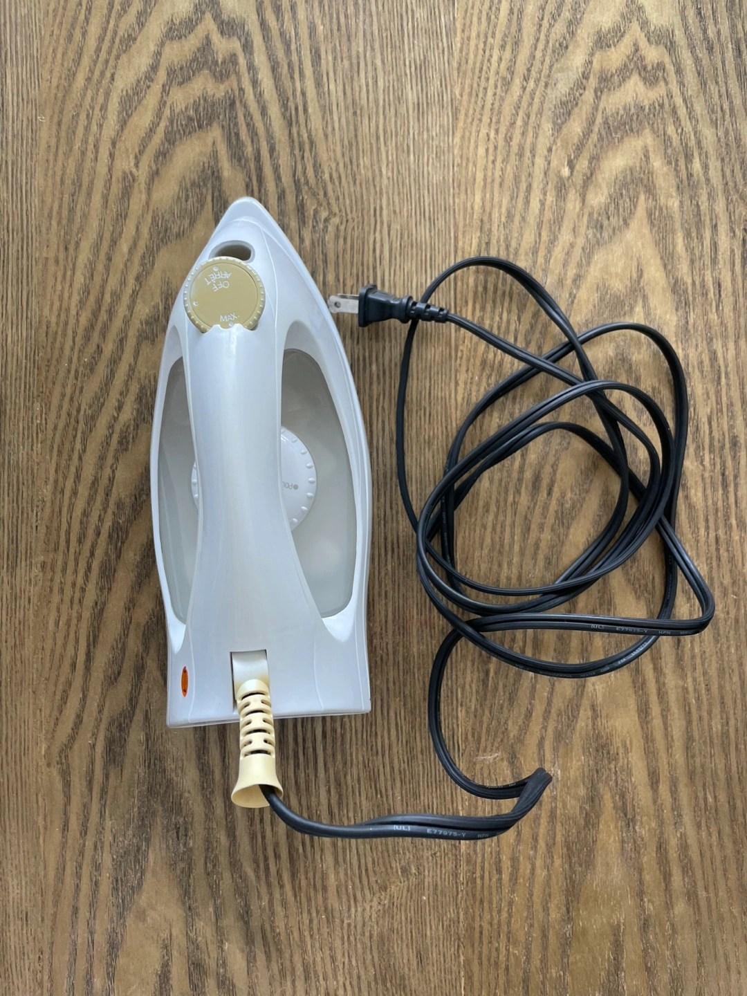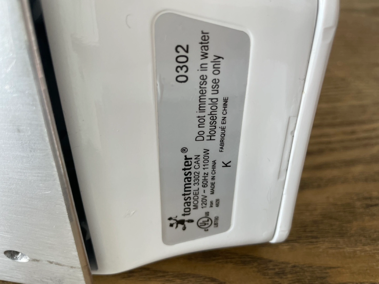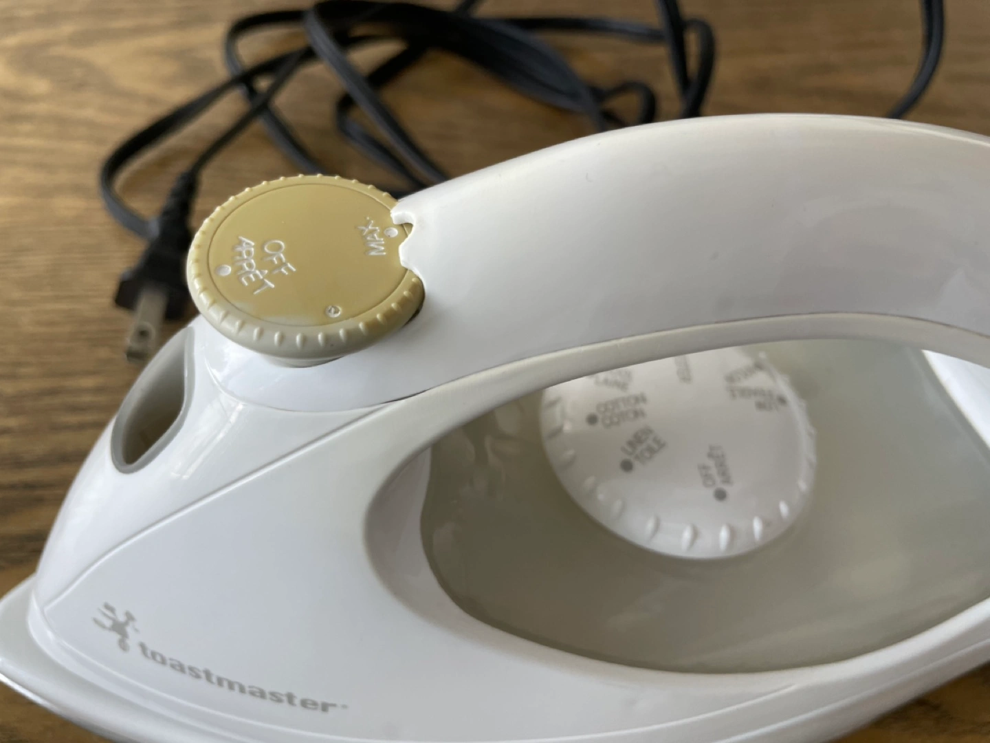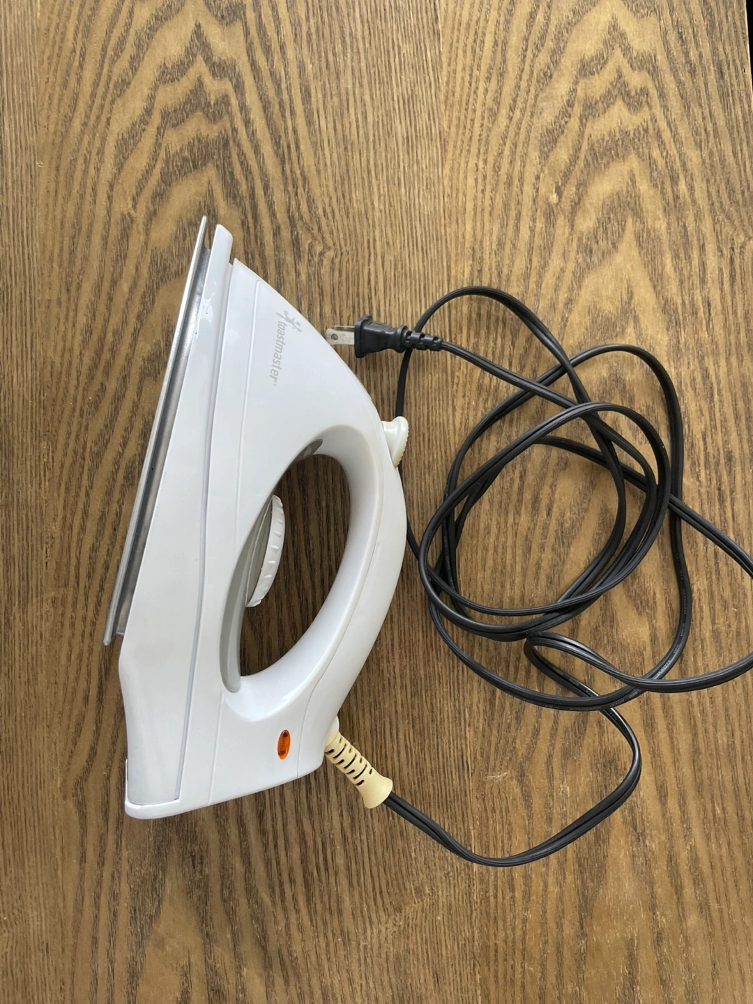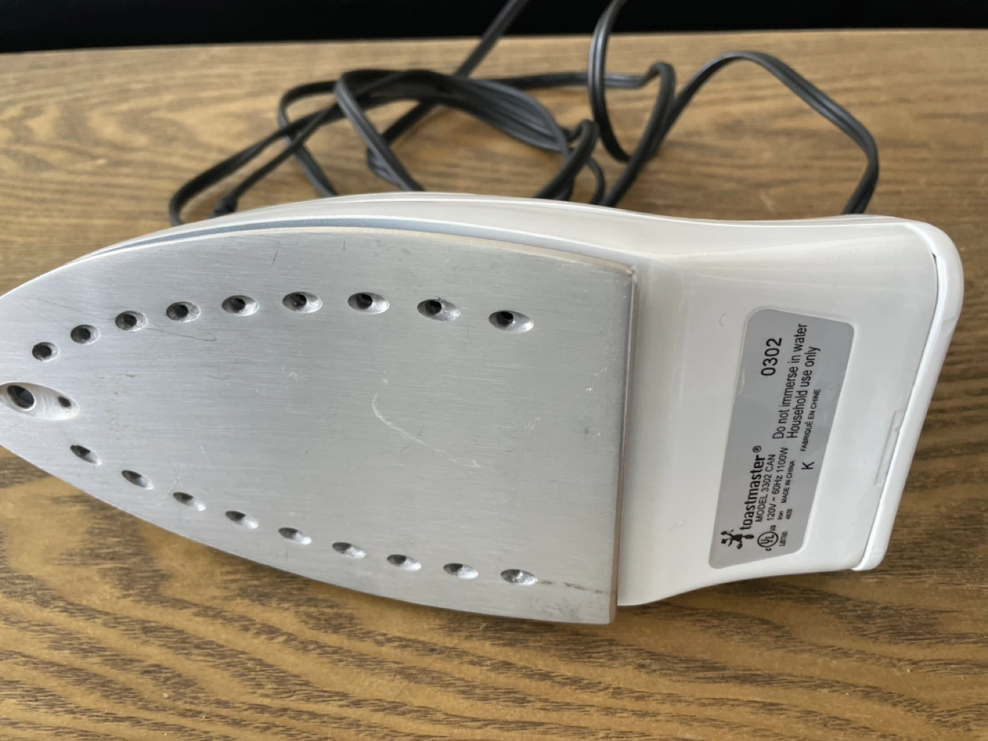 White Toastmaster iron. Model 2327. 1100W. Features temperature control dial. Includes power cord. Subway wellesley station