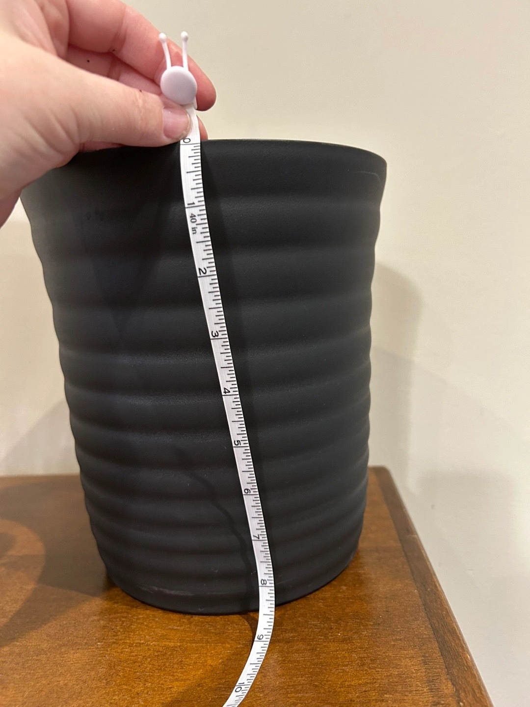 Stylish black planter, ribbed design. Approximately 8 inches tall. Perfect for indoor plants.