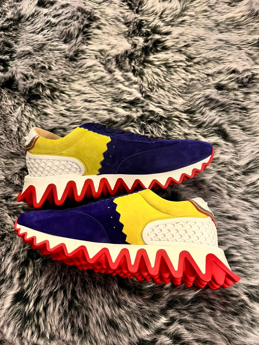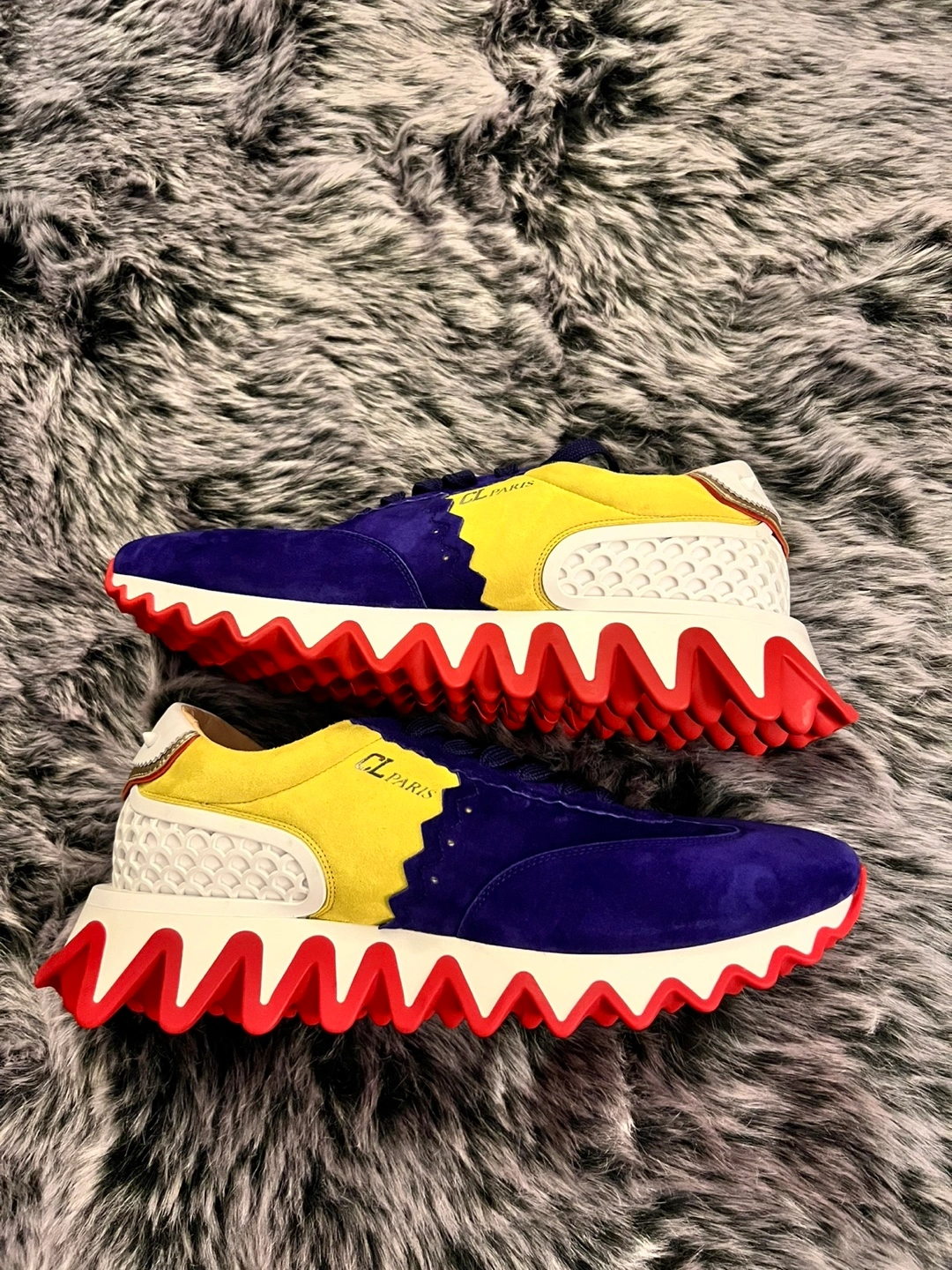 Brand New Authentic Christian Louboutin Louis Orlato sneakers. Purple and yellow suede upper. Red and white sole. Made in Italy.