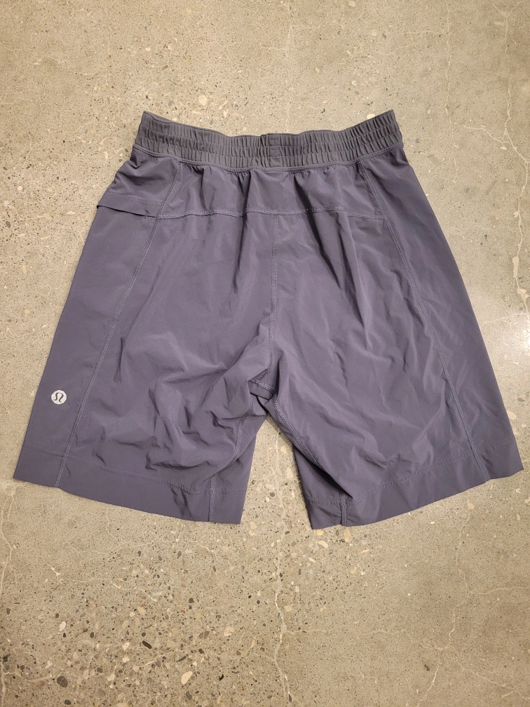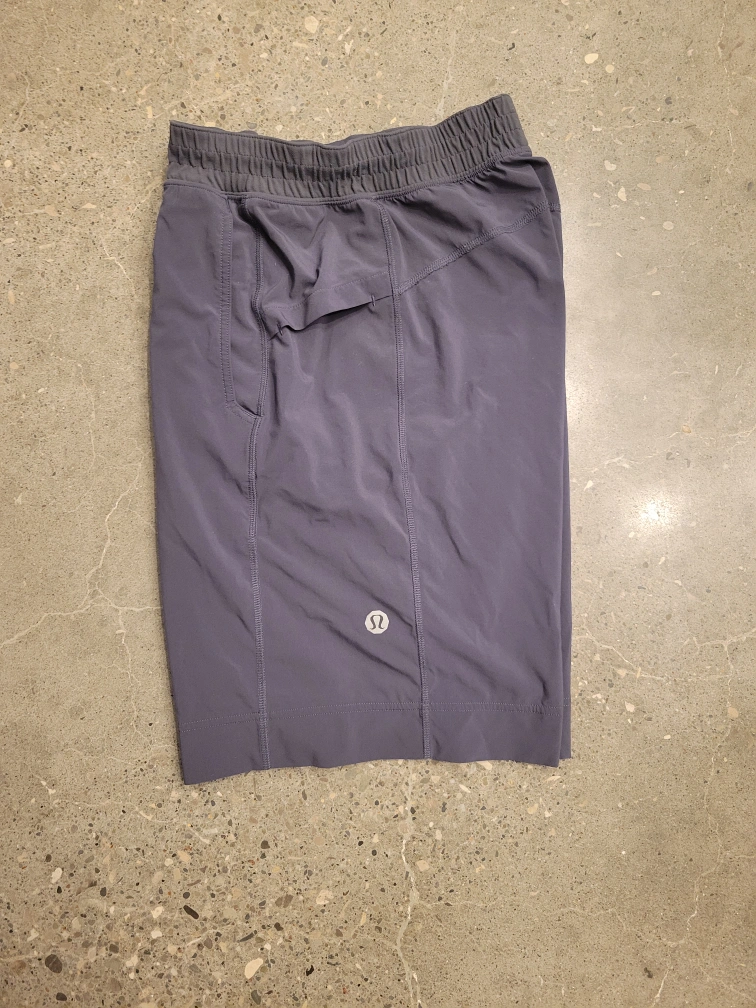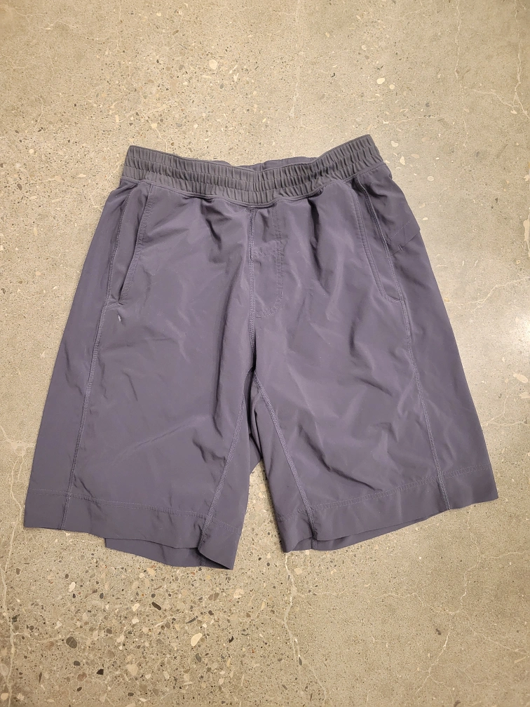 Men's size medium Lululemon Metal Vent Tech shorts. Dark grey colour. Elastic waistband. Side pockets. Great for workouts or casual wear. small stain below 1 pocket pls see photo